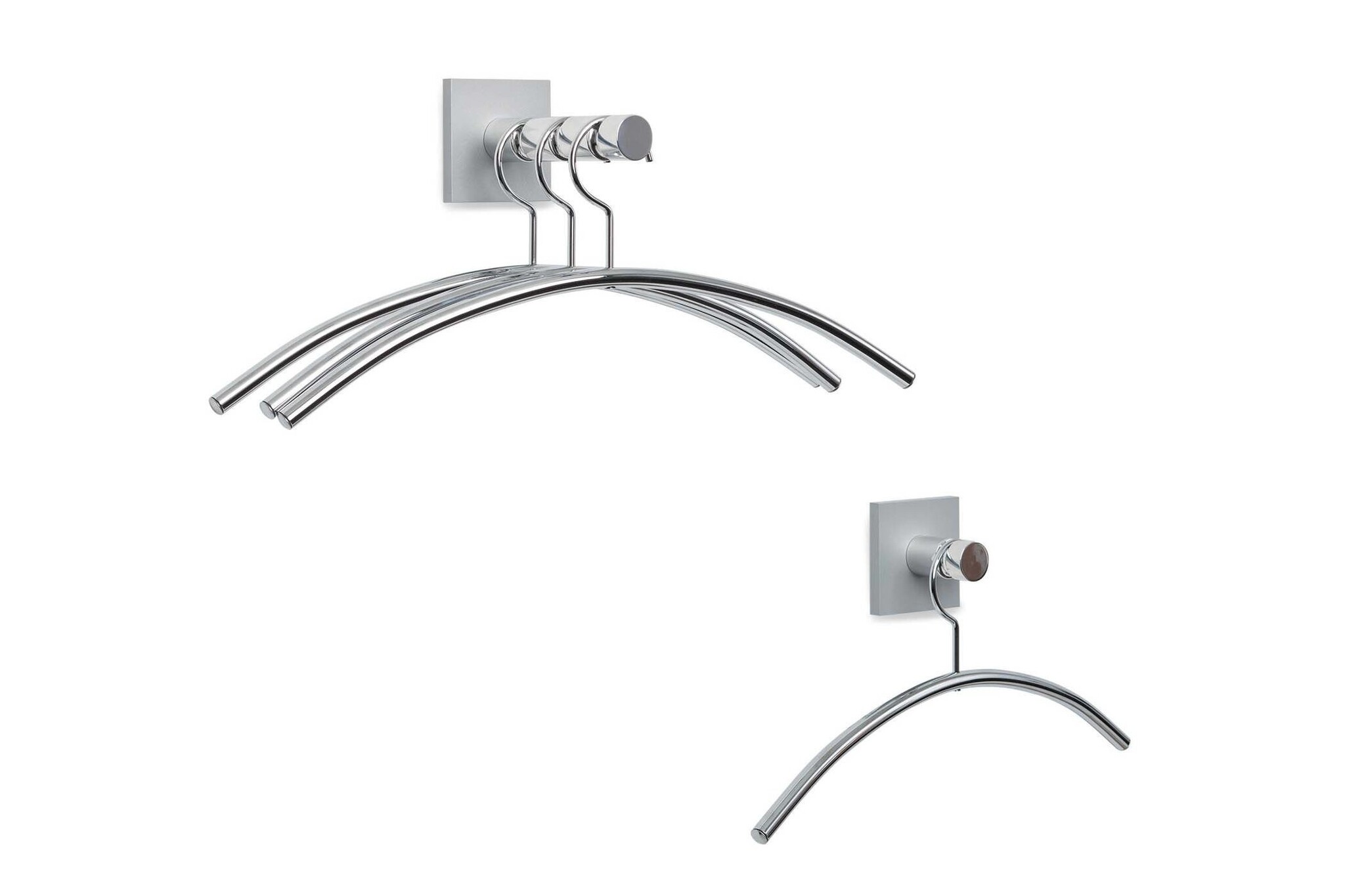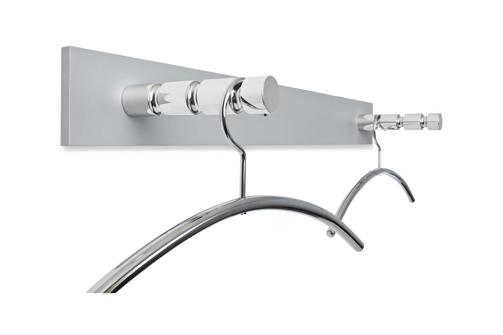 Cascando Hangon Double, elke entree verdient de symmetrische Hangon double - dubbel en dwars. Hangon double is representatief, degelijk en modern. Het element is verkrijgbaar in uitvoeringen voor twee tot acht kledinghangers. Hangon double is voorzien van een gerilde kapstokstang in gepolijst aluminium. Het mat aluminium vormt een fraai contrast. Kledinghanger Chrome past goed bij deze wandgarderobe.