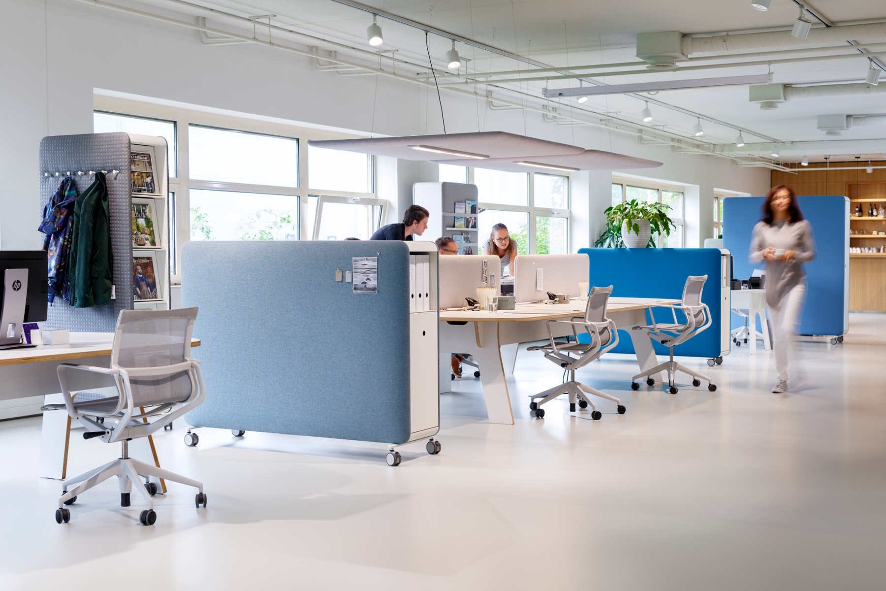 De Drawer is voorzien van wielen, waardoor het makkelijk te verplaatsen is en er snel een privéruimte gecreëerd kan worden.