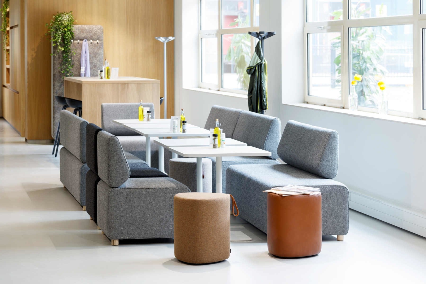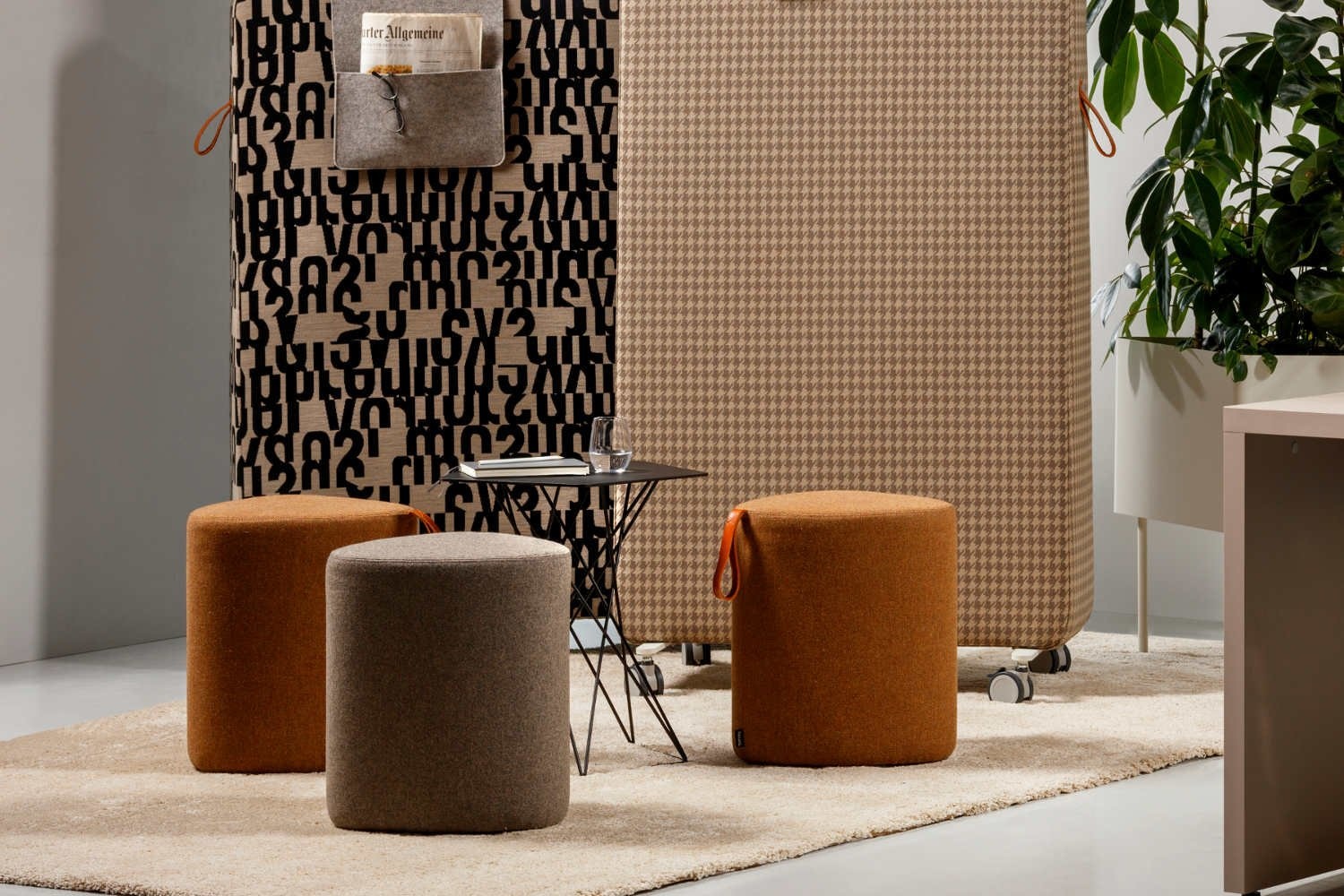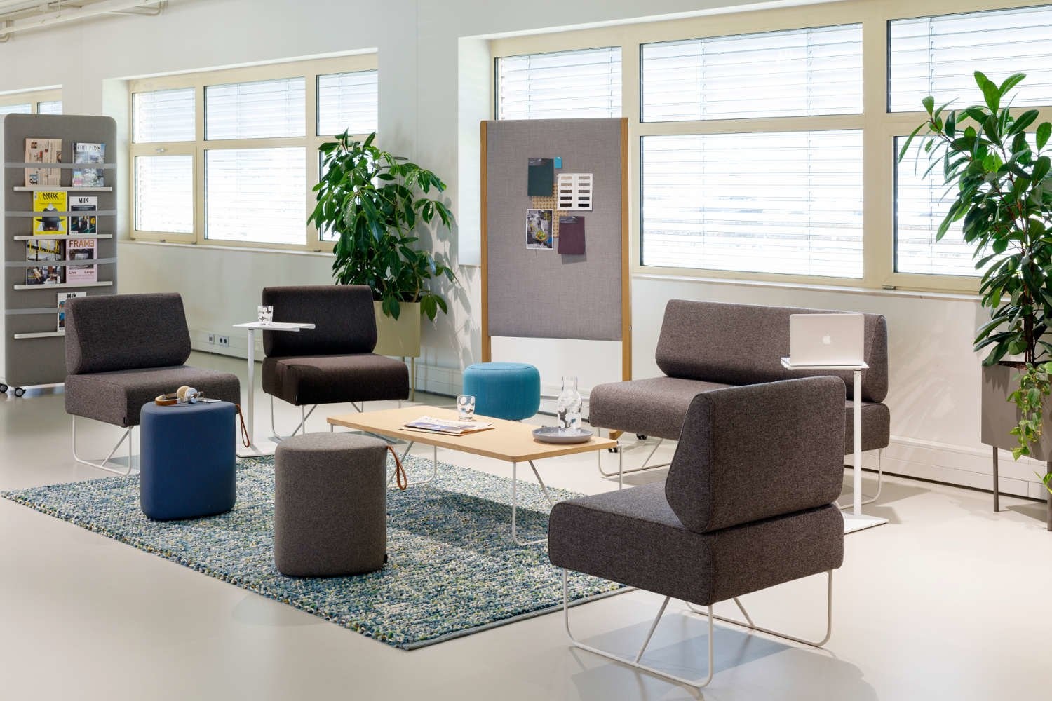 De Cascando Pully poef is uitermate geschikt voor in uw lobby of lounge. Door de poef krijgt de ruimte een wat informelere sfeer en krijgt de ruimte een echt huiskamergevoel. Door de poef in verschillende stoffen en kleuren bij elkaar te zetten ontstaat er een gezellige atmosfeer. De originele Cascando Pully Pouf is nu beschikbaar in twee versies, met drie of vier ronde hoeken. Even een informeel gesprek voeren in lobby, lounge of coffee corner. Snel even bijschuiven op een werkplek of in de vergaderruimte. Het is allemaal mogelijk met de Pully Pouf.