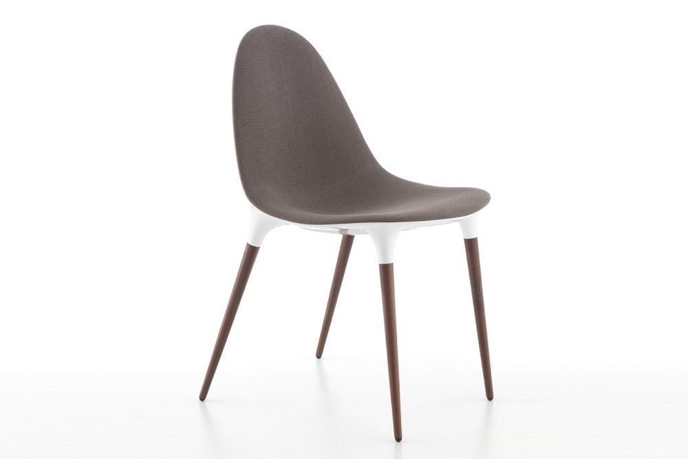 Deze vierpootstoel is verkrijgbaar in vier soorten poten. Zo kunt u kiezen voor verchroomde, stalen, natuurlijk houten of Amerikaanse noten poten. De zitschaal is voorzien van een polyurethaan vulling. De achterkant van de stoel is glanzend wit of zwart nylon. Tevens kunt u kiezen voor gestoffeerde of ledere bekleding aan de voorkant van de stoel en een gehele gestoffeerde versie is ook mogelijk. Tot slot zijn de poten standaard afgewerkt met zwarte kunststof dopjes voor harde en zachte vloeren.