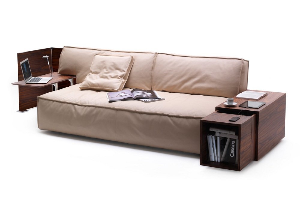 Elk element van de Cassina Myworld 244 bank is volledig bekleed met een afneembare stof of leder. De Myworld bank is uit te breiden met een bijzettafel, die aan de bank door de poten in gepolijst aluminium te bevestigen zijn. Het is een handige bijkomstigheid voor als u uw bank wilt gebruiken als werkplek. Zo kunt u eenvoudig u laptop op de bijzettafel plaatsen en andere spullen. Tevens geeft het de bank een unieke uitstraling door deze handige extra functie.