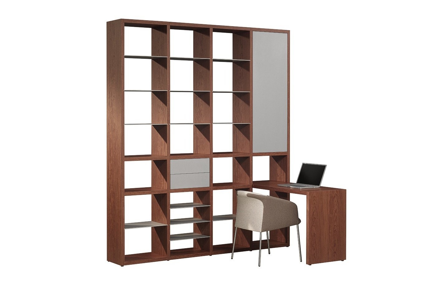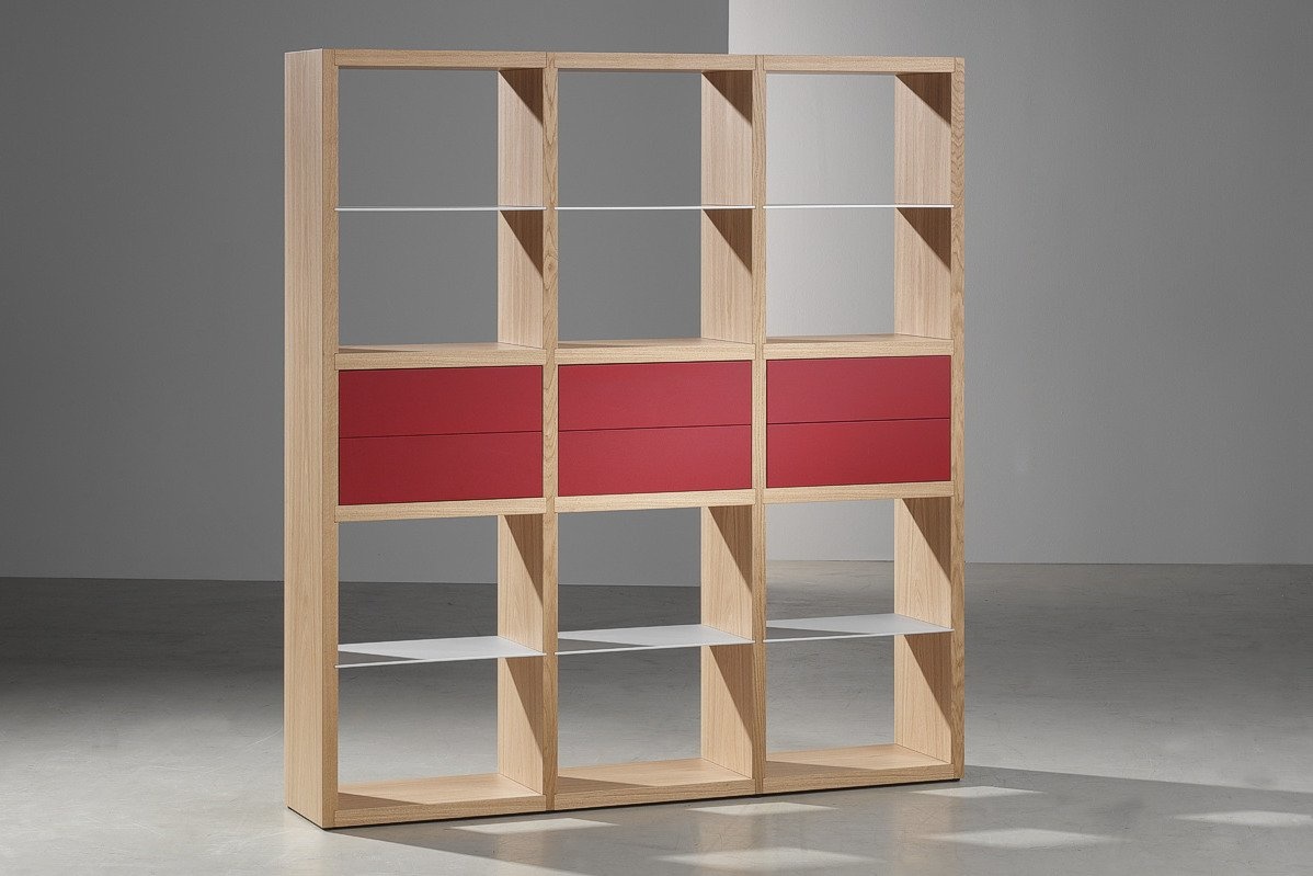 Castelijn Groove - een strak stramien van open vakken, dat is de basis van de collectie Groove, de mooi gedetailleerde boekenkasten met ingeschoven aluminium schappen, afgewisseld met stevige constructieplanken. Deze design kasten, ontworpen in 2005 door Coen Castelijn zijn strak, rank en zonder zichtbare verbindingen vrijstaand als roomdivider toe te passen. Verkrijgbaar in vier hoogtematen, is dit systeem boekenkasten van kamerbreed dressoir tot plafondhoge wand op te bouwen. Al of niet aangevuld met deuren, laden, geïntegreerde werkbladen, apparatuur lowboards of TV-schuifdeurkasten. De staanders en constructieschappen van deze design kasten zijn leverbaar in lak of hout, de 6mm dikke inschuifschappen zijn altijd van geanodiseerd aluminium.