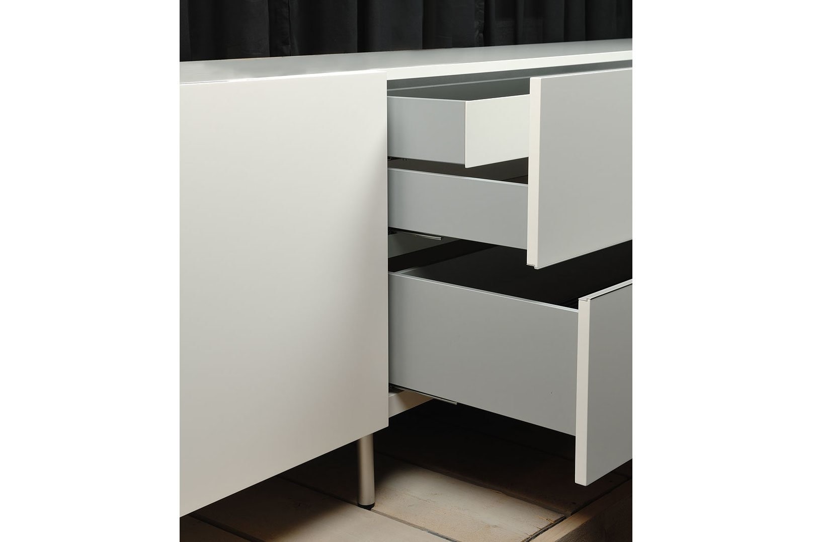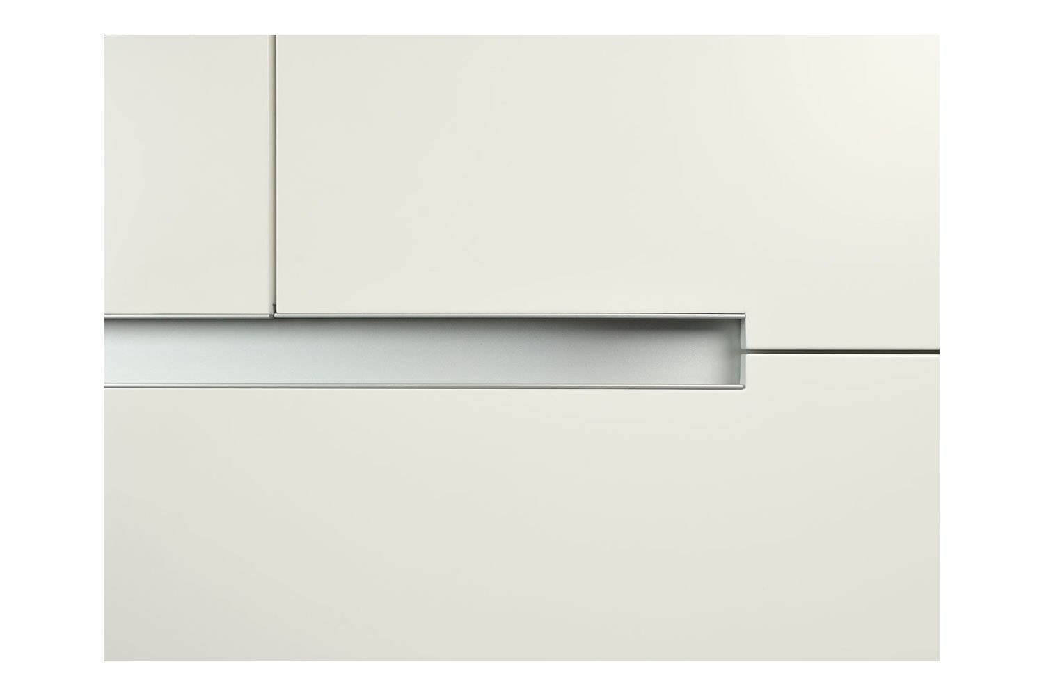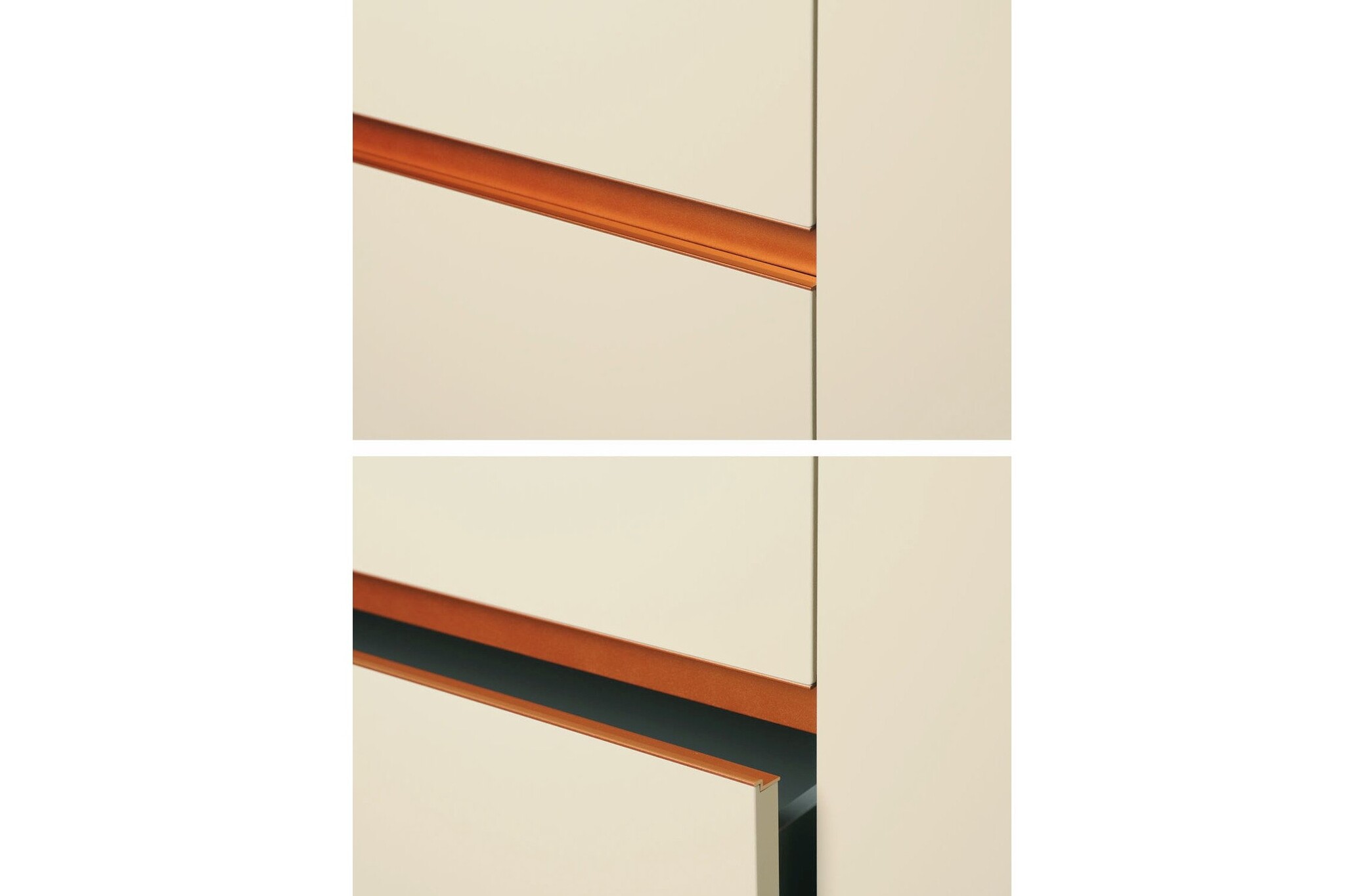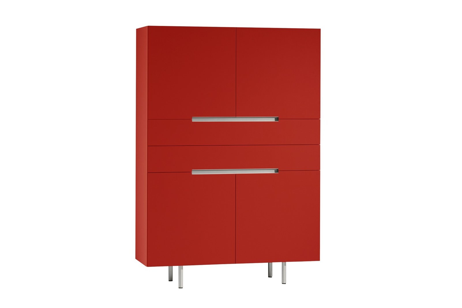 De kasten zijn verkrijgbaar in een uni- of effectlak, hoogglans lak en in houtfineer (of een combinatie hiervan). Het interieur is altijd in uni- of effectlak.