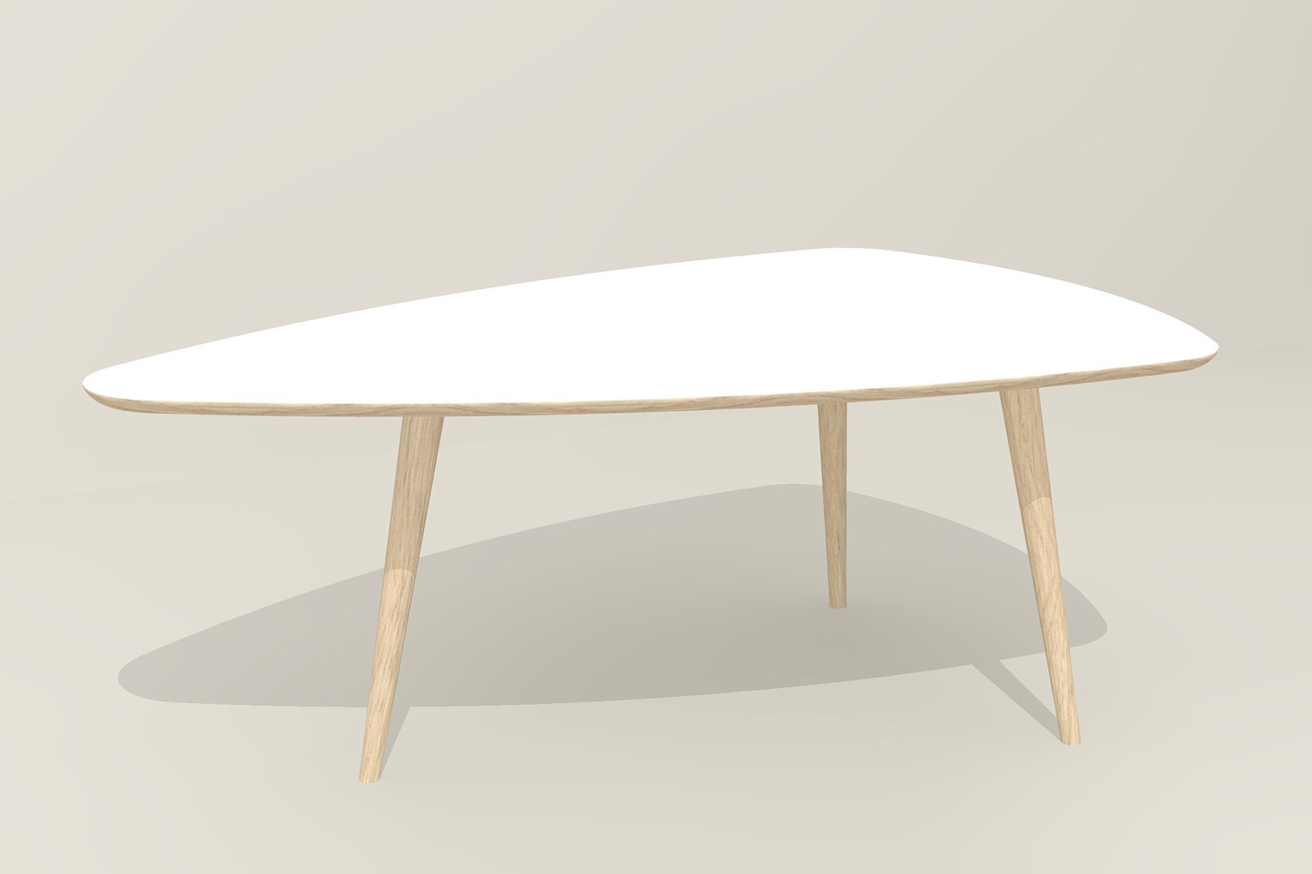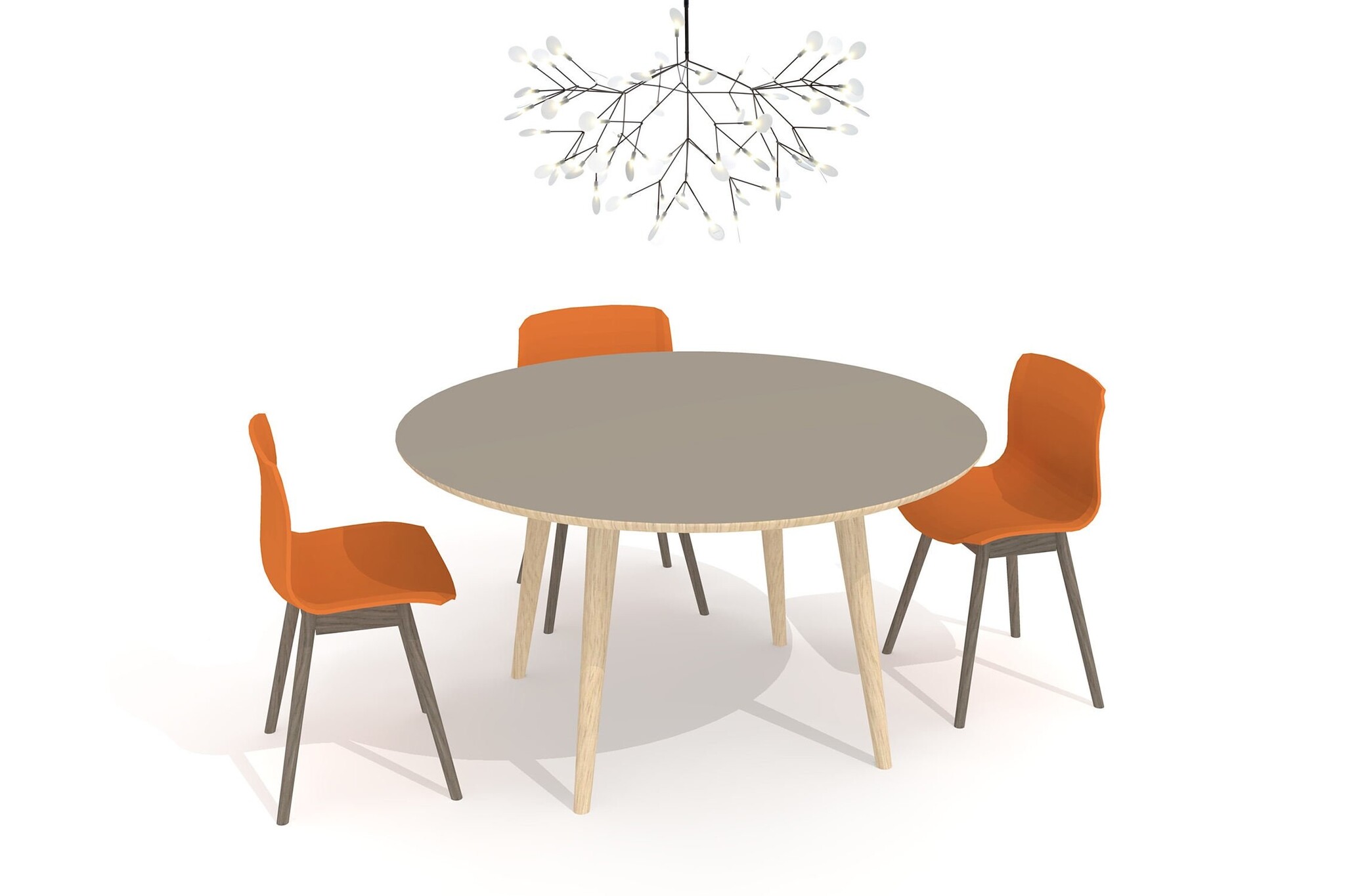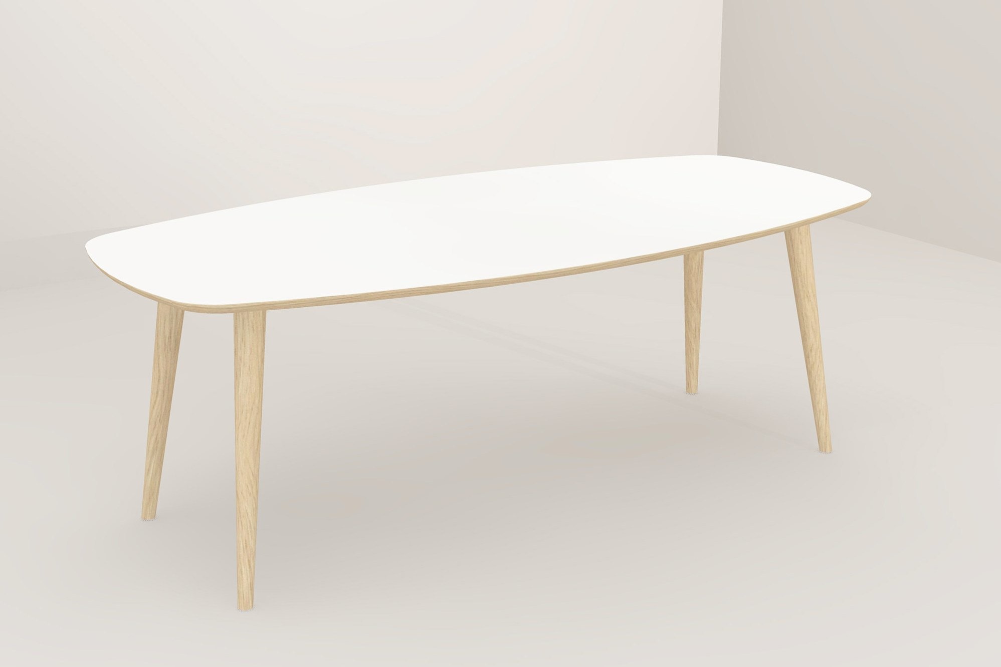 De berken multiplex bladrand en de massief eiken poten kunnen in 6 kleuren worden geolied.