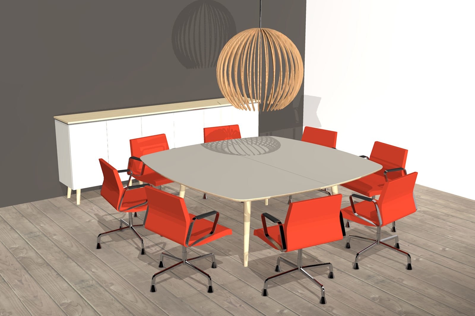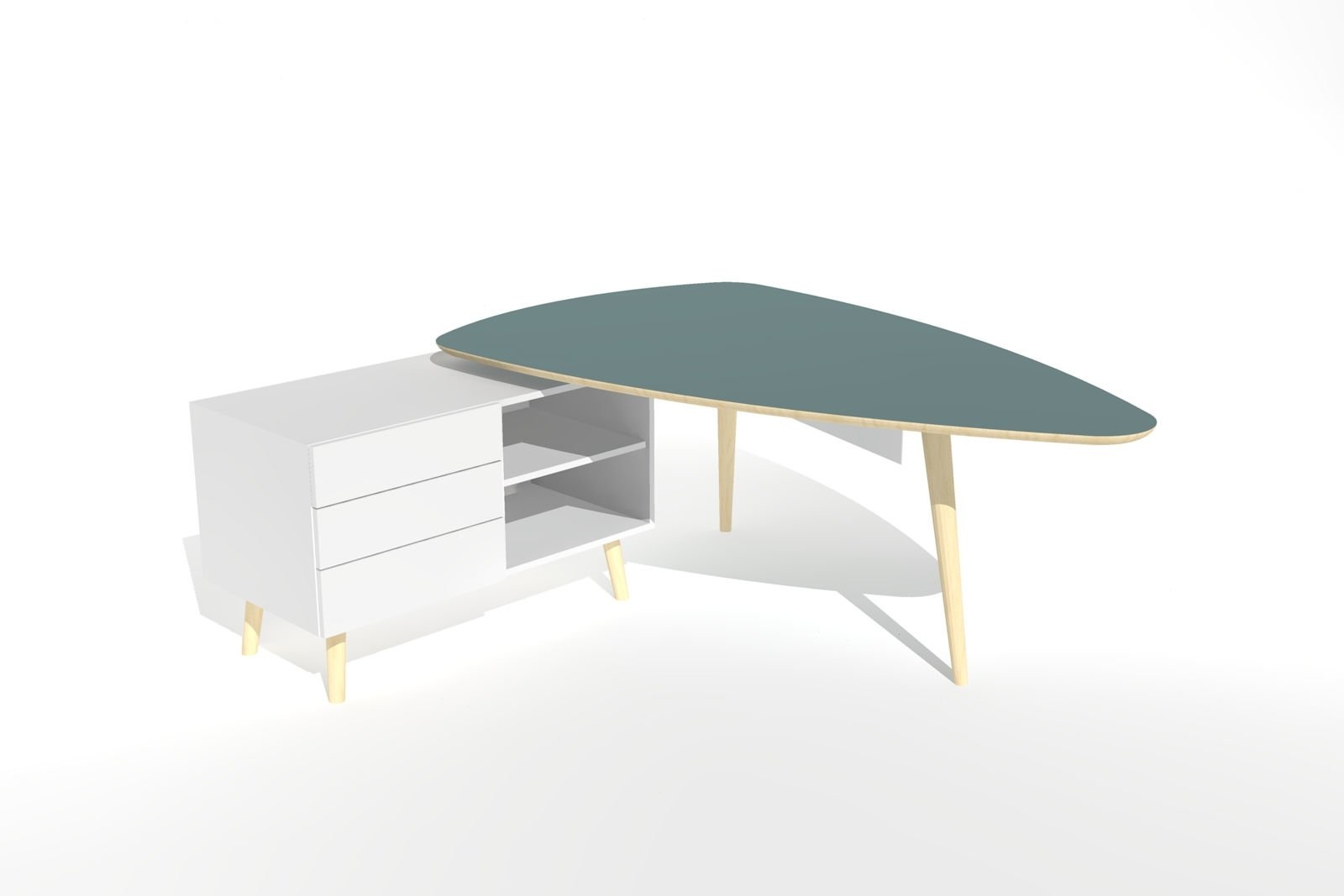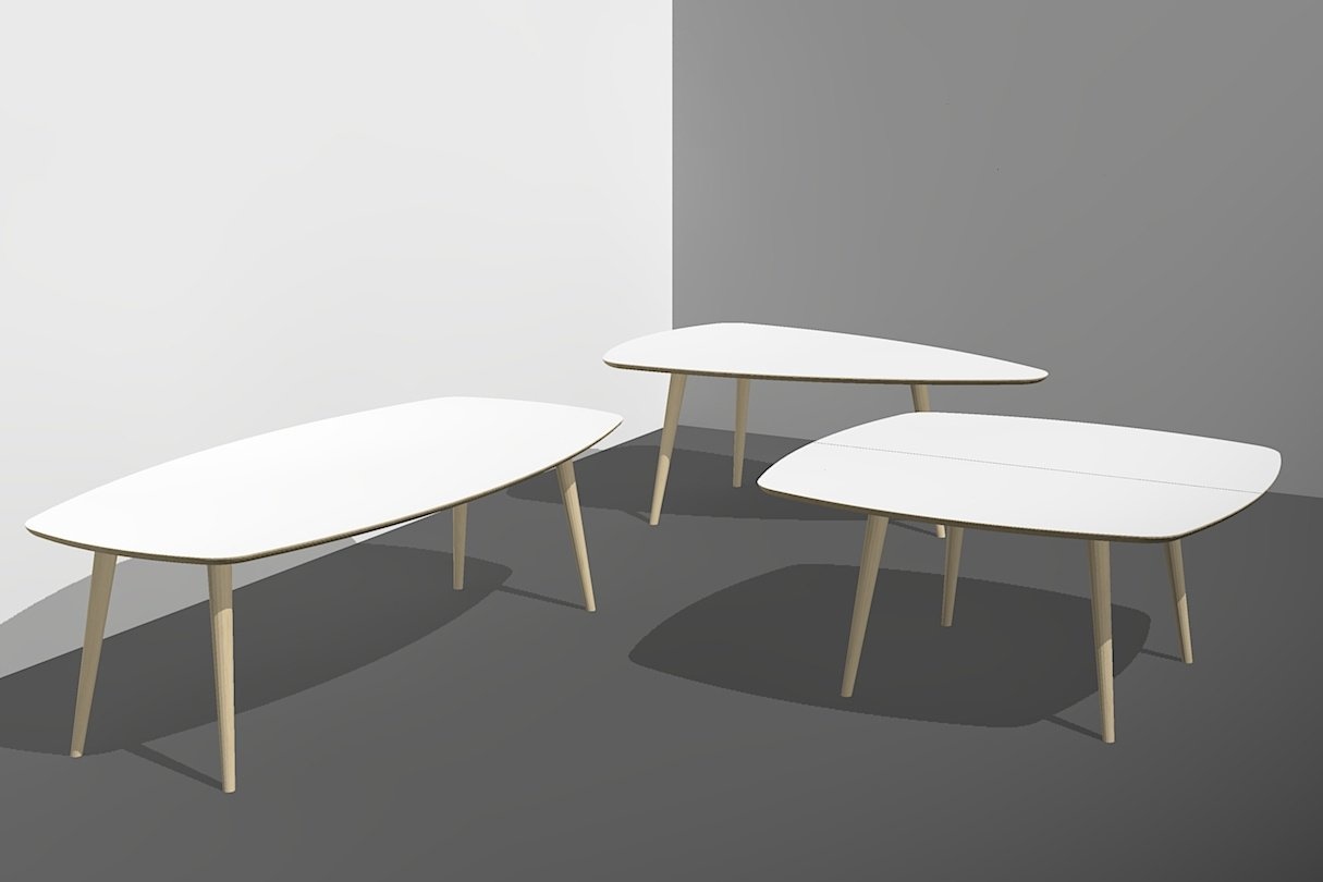 De berken multiplex bladrand en de massief eiken poten kunnen in 6 kleuren worden geolied.