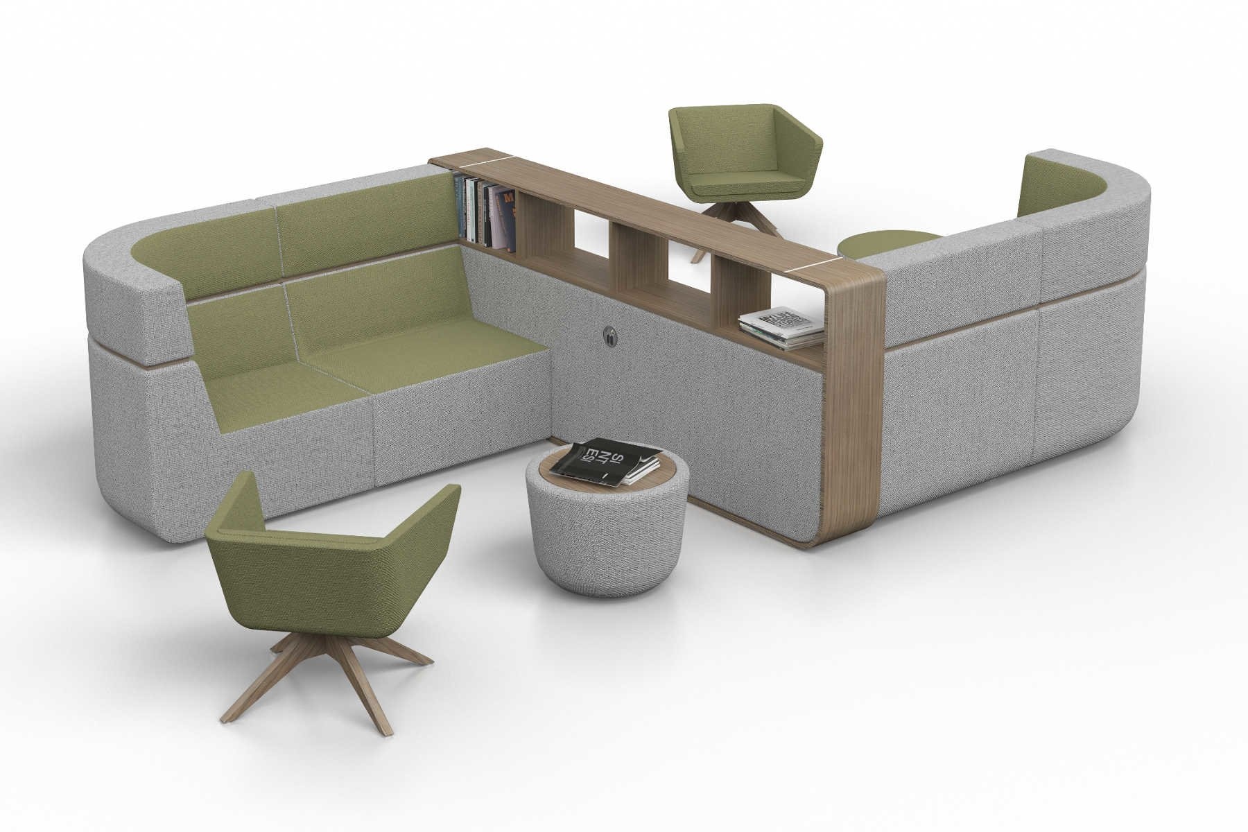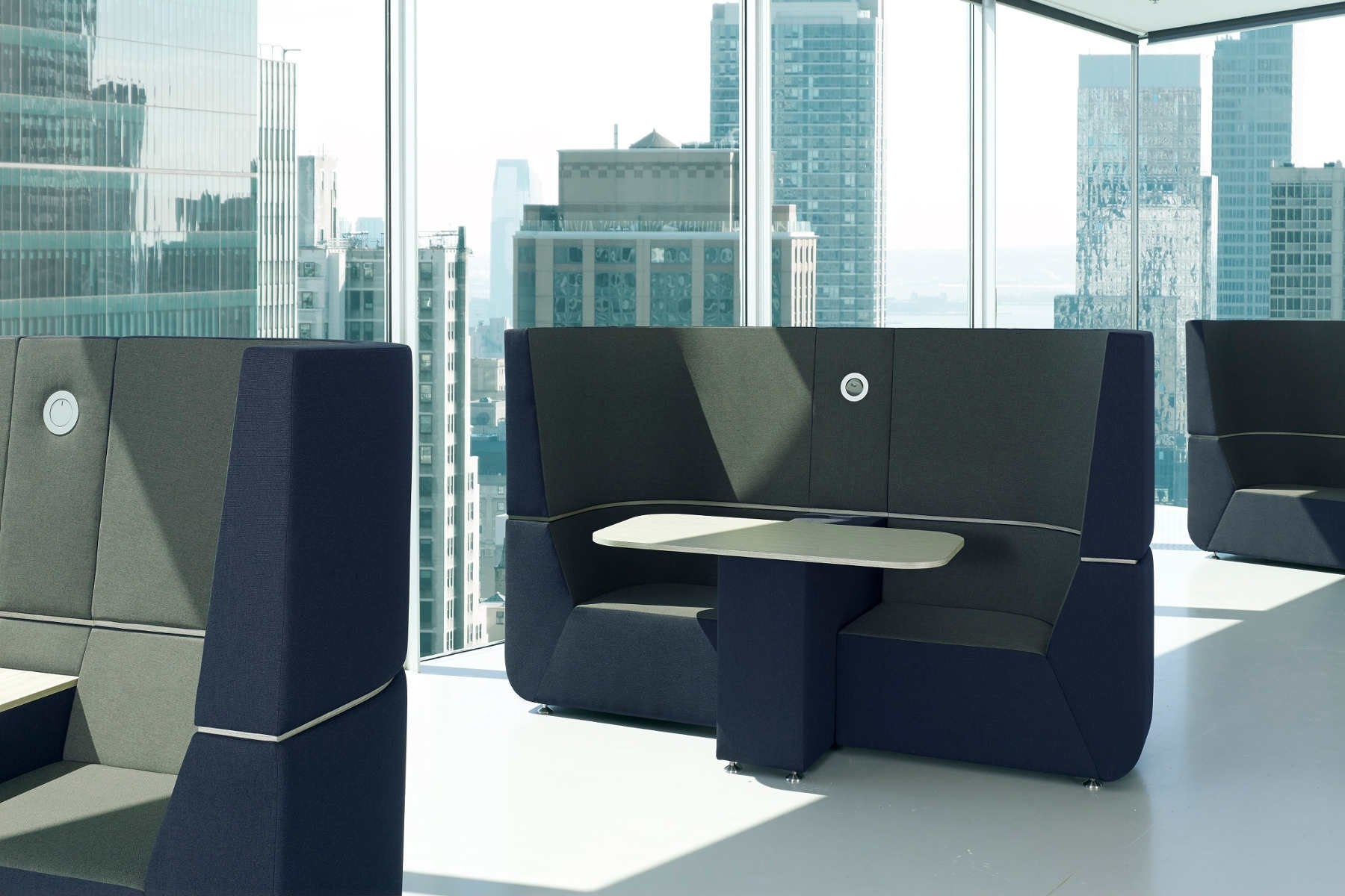 De elementen kunnen naar wens beschikken over een hoge rugleuning. Hierdoor wordt privacy gecreëerd en de akoestiek verbetert.