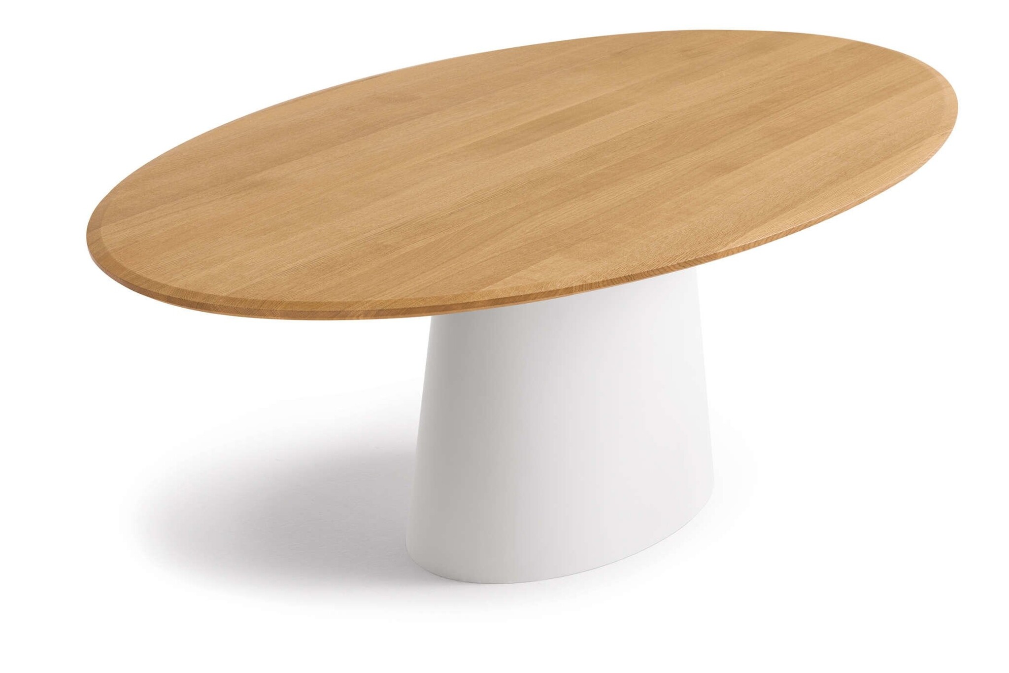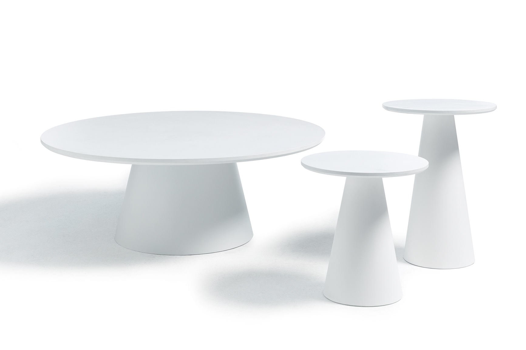 De COR Conic is een elegante tafel die met zijn geometrische vormen altijd sierlijk oogt. Het blad is leverbaar in een ronde, vierkante of rechthoekige vorm. Het blad kan gelakt worden in naturel eiken, walnoot, of esdoornhout. Het frame is verkrijgbaar in mat wit, het materiaal is gemakkelijk schoon te maken en 100% recyclebaar. Ook zijn er van de Conic bijzettafels verkrijgbaar met respectievelijk een hoogte van 41.5 45 42.5 of 54.5 cm.