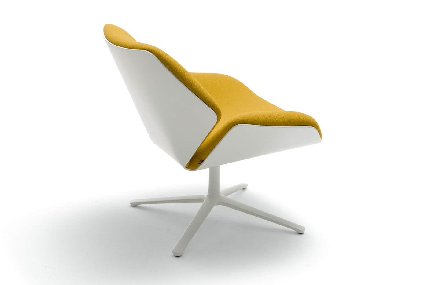 Onderstel: een draaibare kruisvoet in gepolijst aluminium. Tegen meerprijs in de COR lakkleuren of in andere lakkleuren.