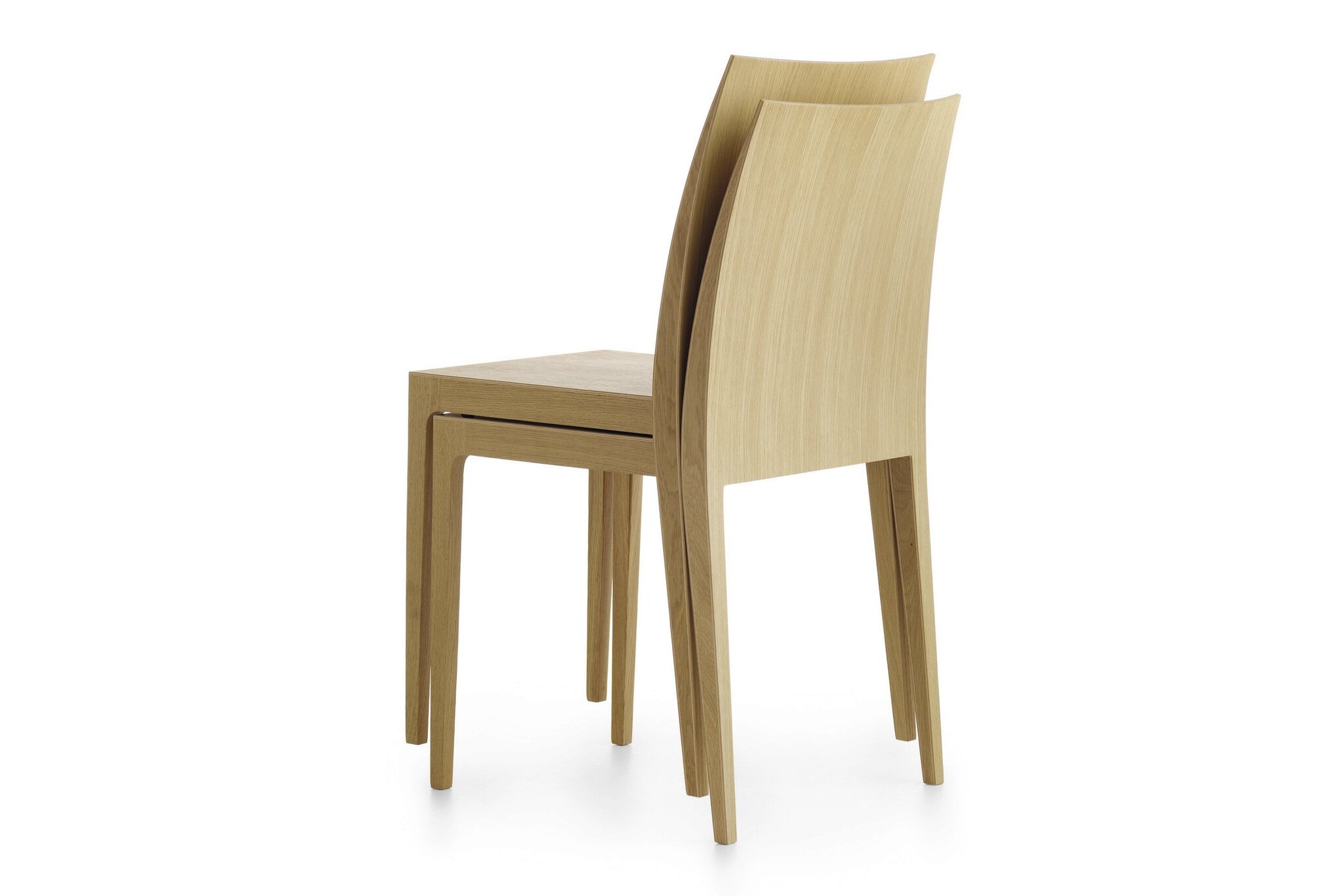 De stoelen zijn stapelbaar enkel bij de variant zonder armleuning.