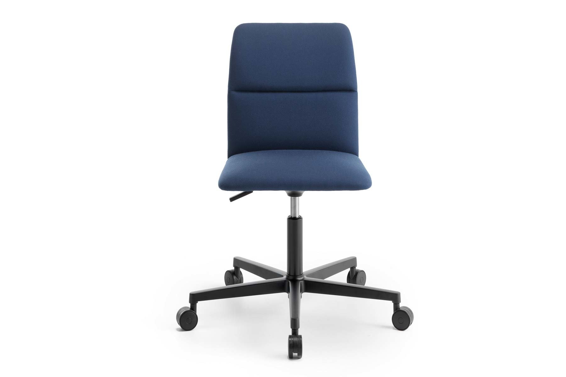 De Crassevig Aura stoel is verkrijgbaar met 4 eikenhouten poten, met gepoedercoat aluminium of in hoogste verstelbare draaivoet met 5 zwenkwielen.