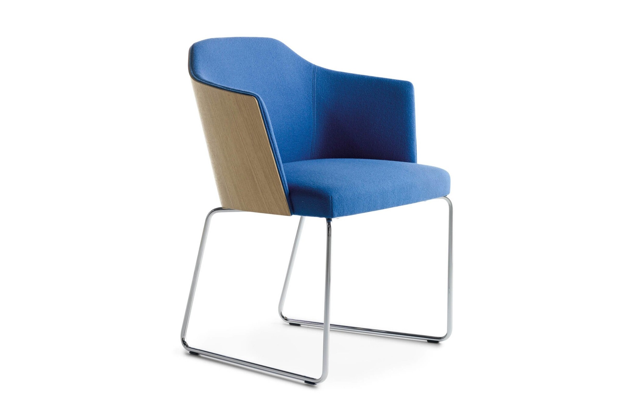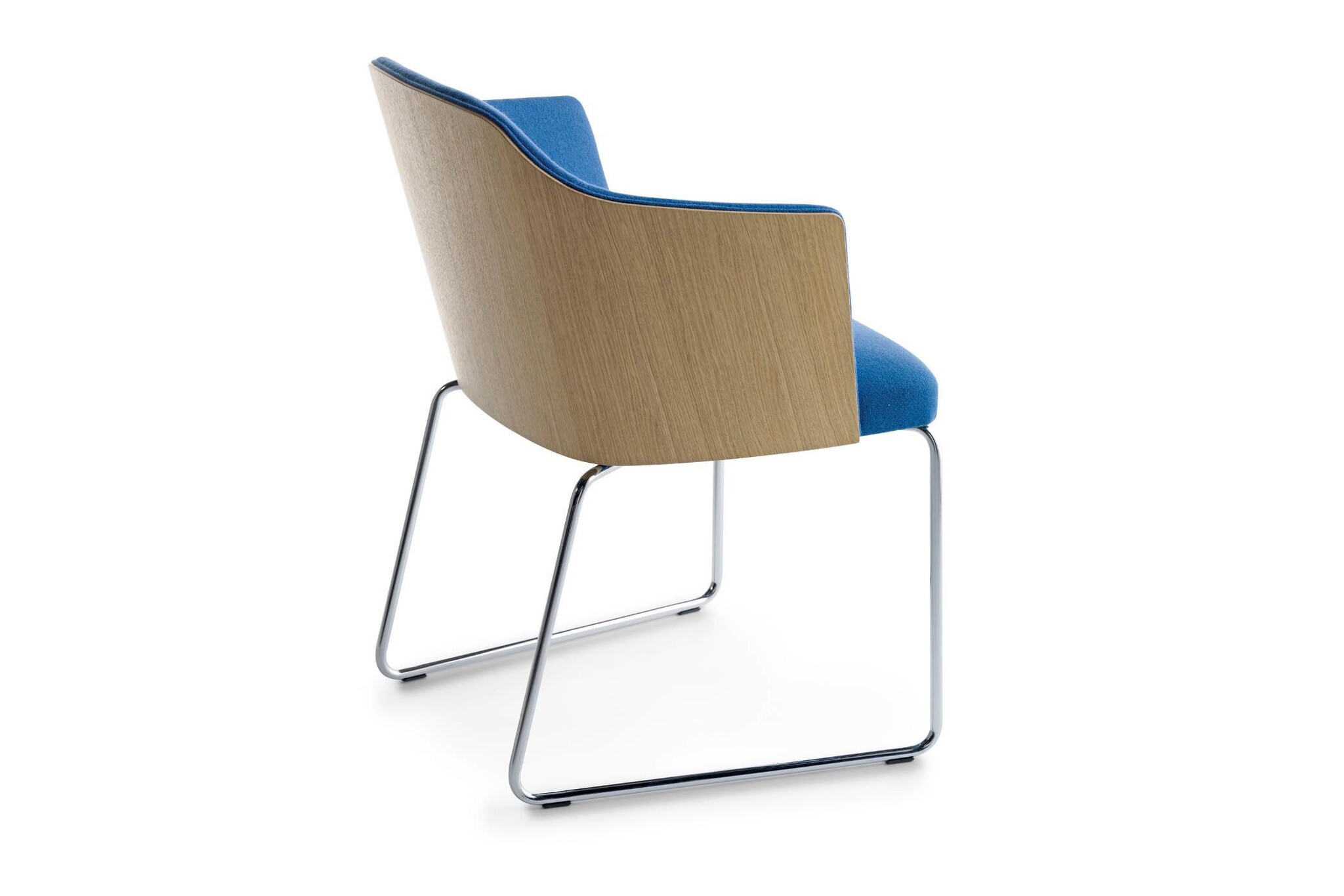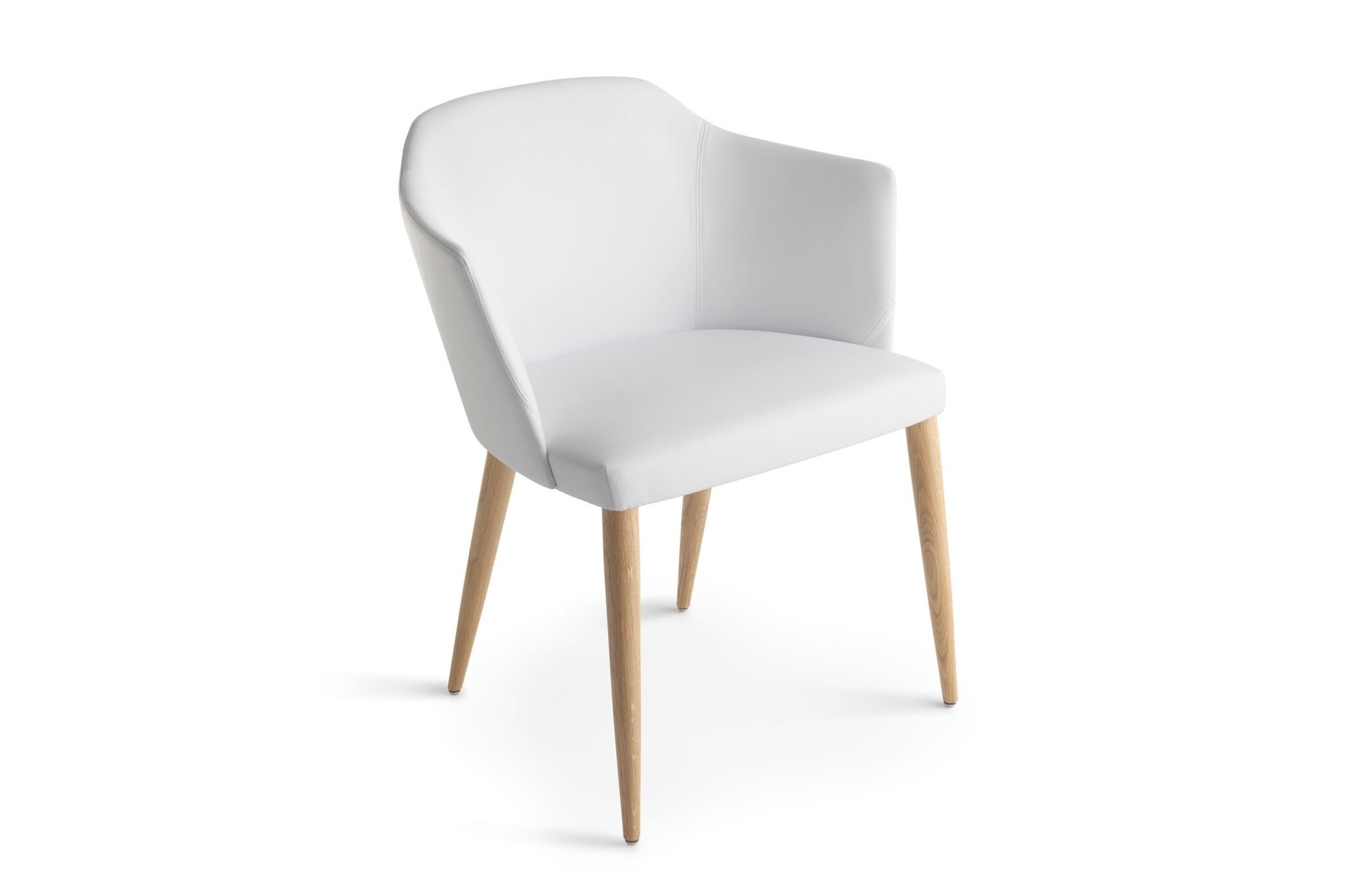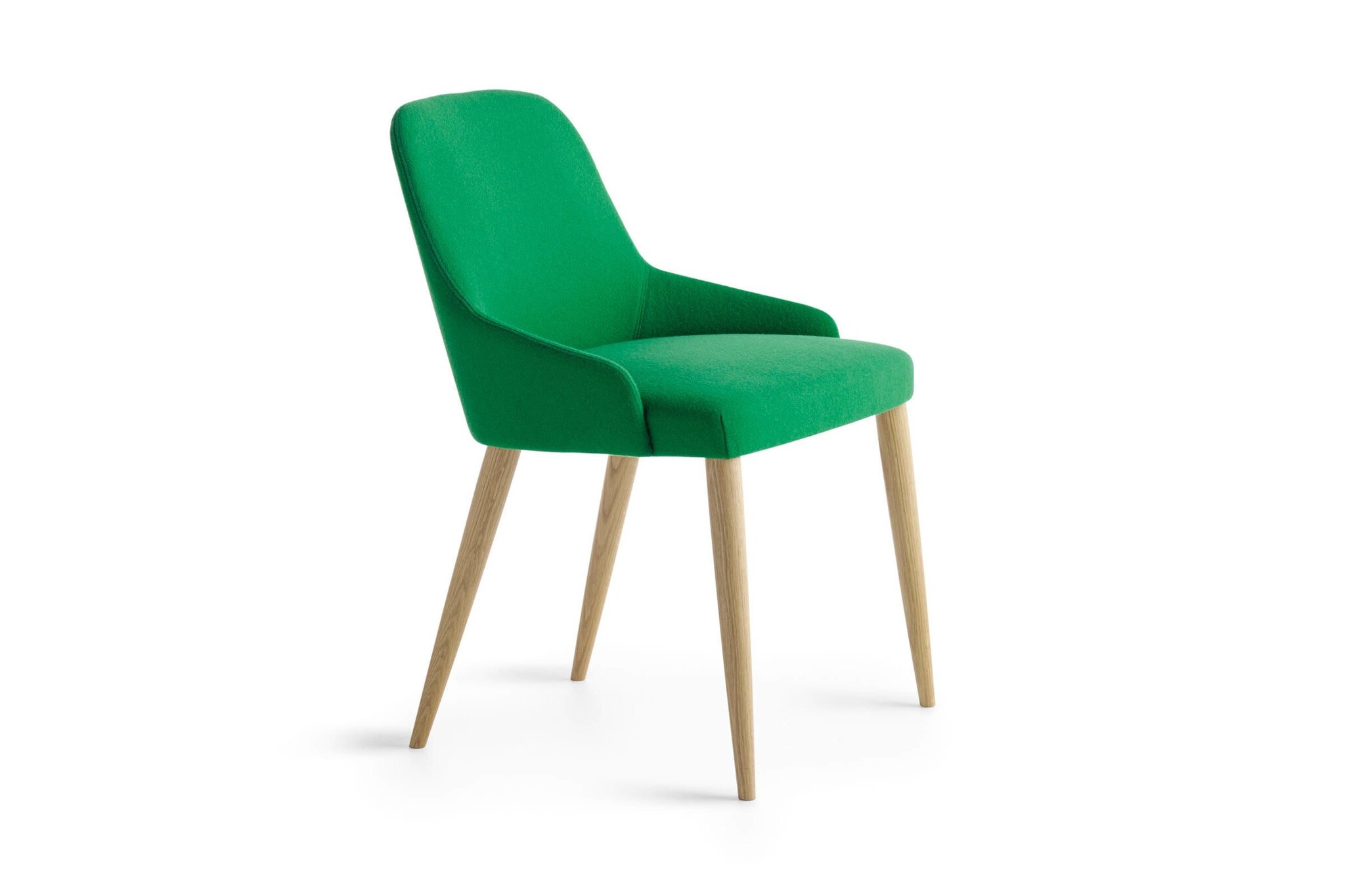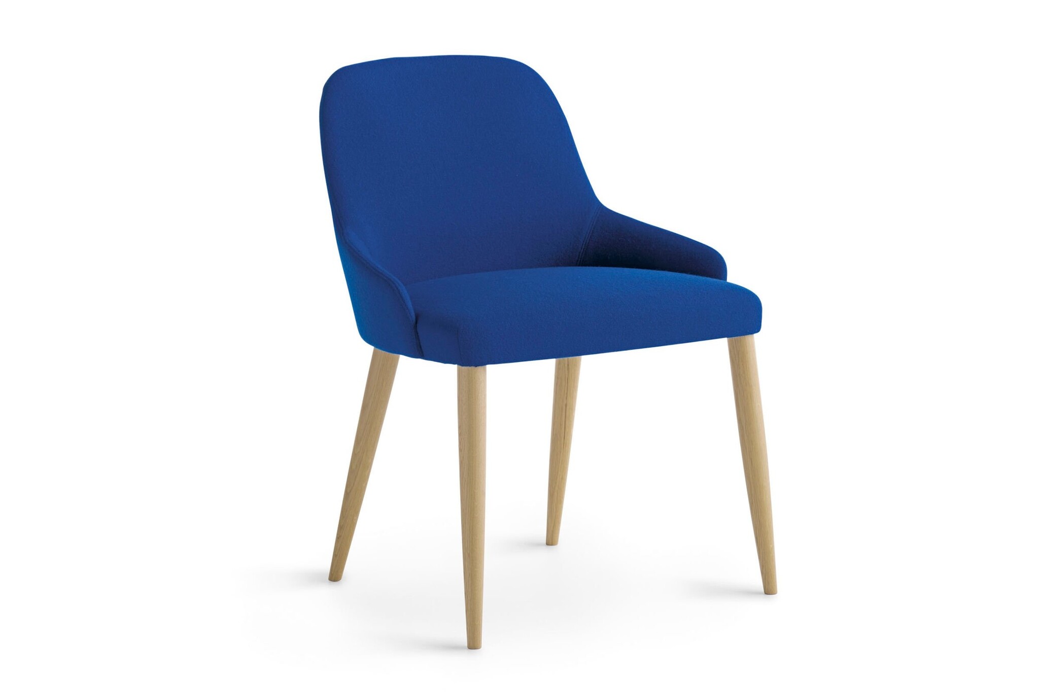 De gestoffeerde stoel heeft een frame in hoogwaardig staal. De poten zijn gemaakt van massief hout (beuken, eiken of Amerikaans noten). Polyurethaanschuim gevormde zitting en rugleuning. Bekleding in brandwerend schuim. Getest op intensief gebruik.