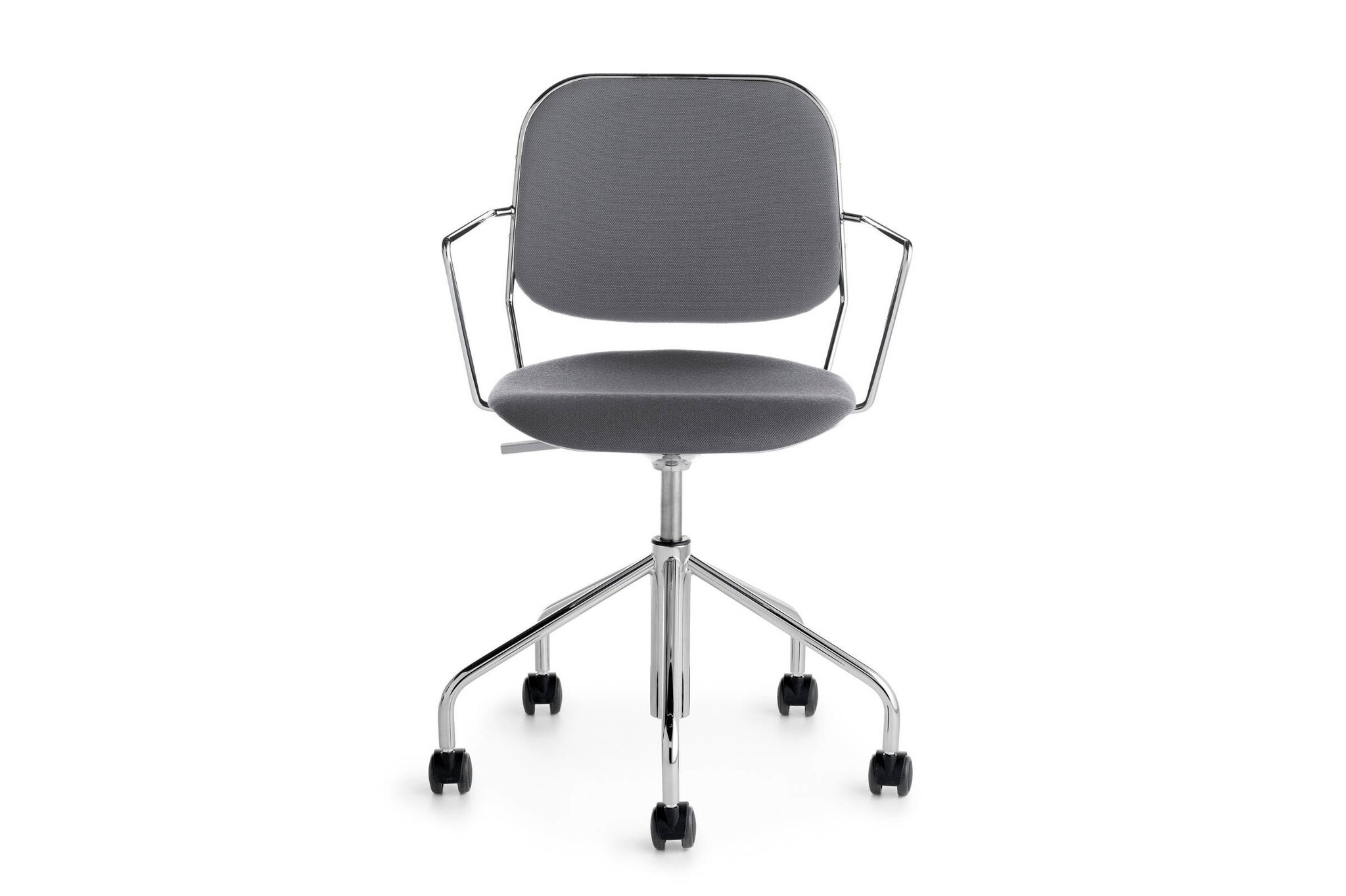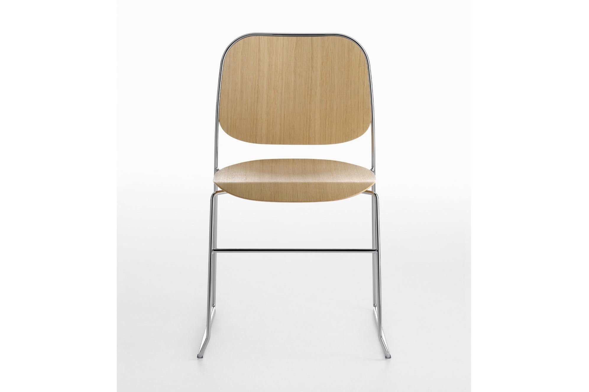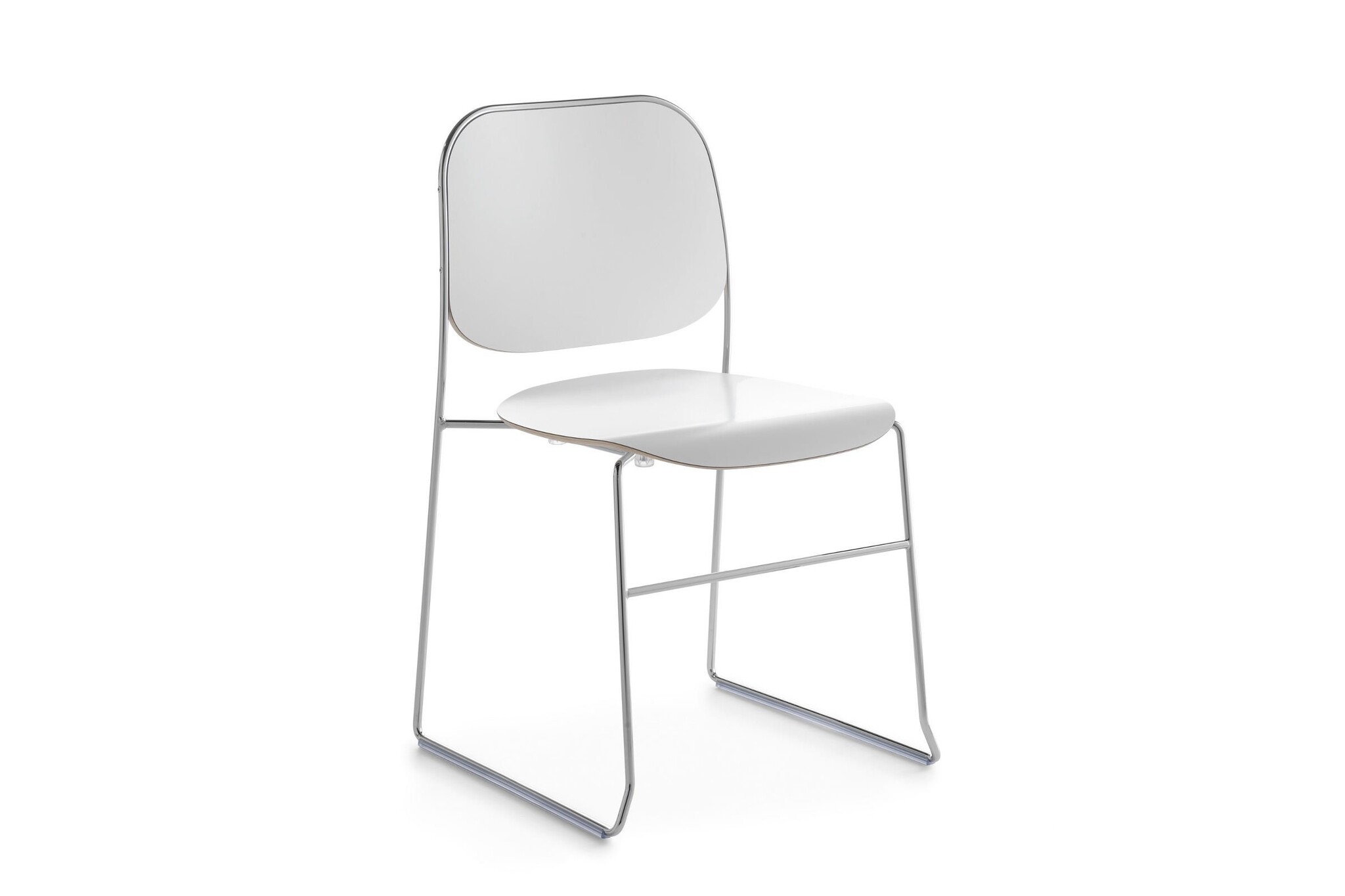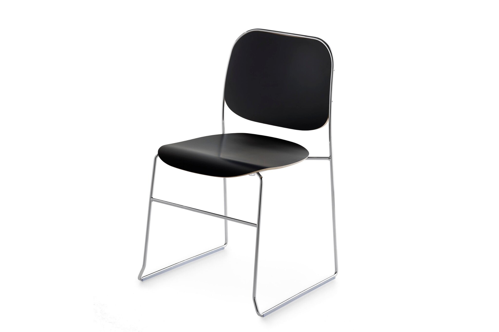 De stoelen hebben een frame in verchroomd staal van 11 mm. Poedercoating is op aanvraag. De zitting en rug is gemaakt van 10 mm multiple en heeft FU bekleding met brandwerend schuim. Stapelbaar tot maximaal 8 stuks en de stoelen zijn is getest op intensief gebruik. Optioneel zijn armleggers en een sterpoot onderstel mogelijk.