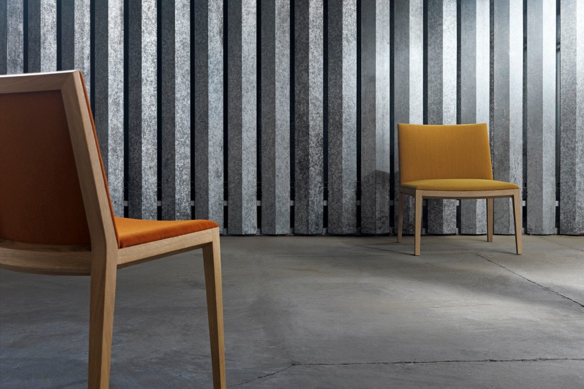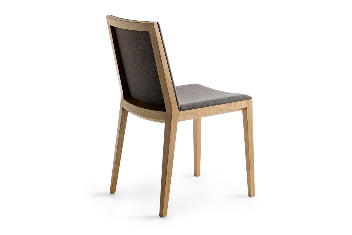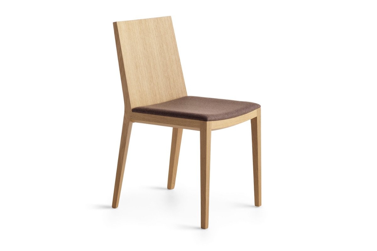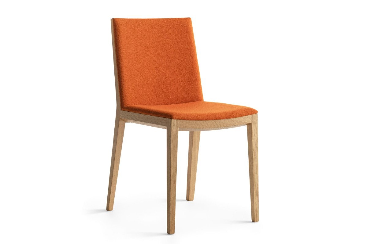 Crassevig Bianca Light, een massief houten stoel met een zitting en rugleuning van multiplex. Volledig gestoffeerd mogelijk. De Crassevig Bianca Light is verkrijgbaar in beuken, eiken en gebeitst.