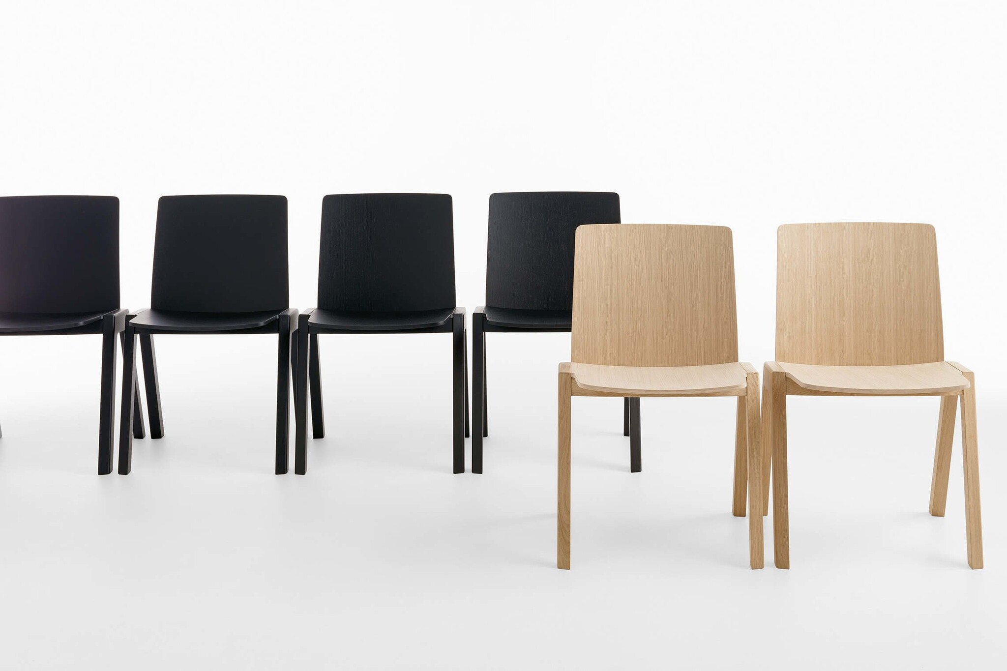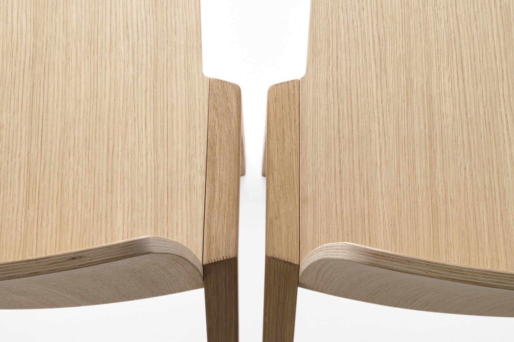De structuur van de stoel is massief hout en 11 mm dik multiplex in 10 lagen. Ze zijn verkrijgbaar in naturel, gelakt of gelamineerd beuken of eiken. Daarnaast is er ook de mogelijkheid voor een gestoffeerde | gewatteerde zitting. Deze heeft een dikte van 12 mm en is voorzien van de vlamvertragende BS 5852.