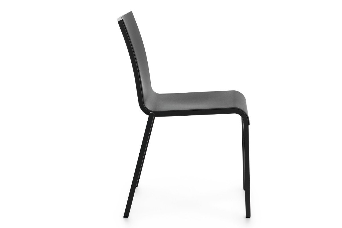 Crassevig Persia, eenvoudige stoel met een frame van vierkante stalen buizen. De Crassevig Persia stoel is verkrijgbaar in verschillende kleuren, met of zonder armleggers.
