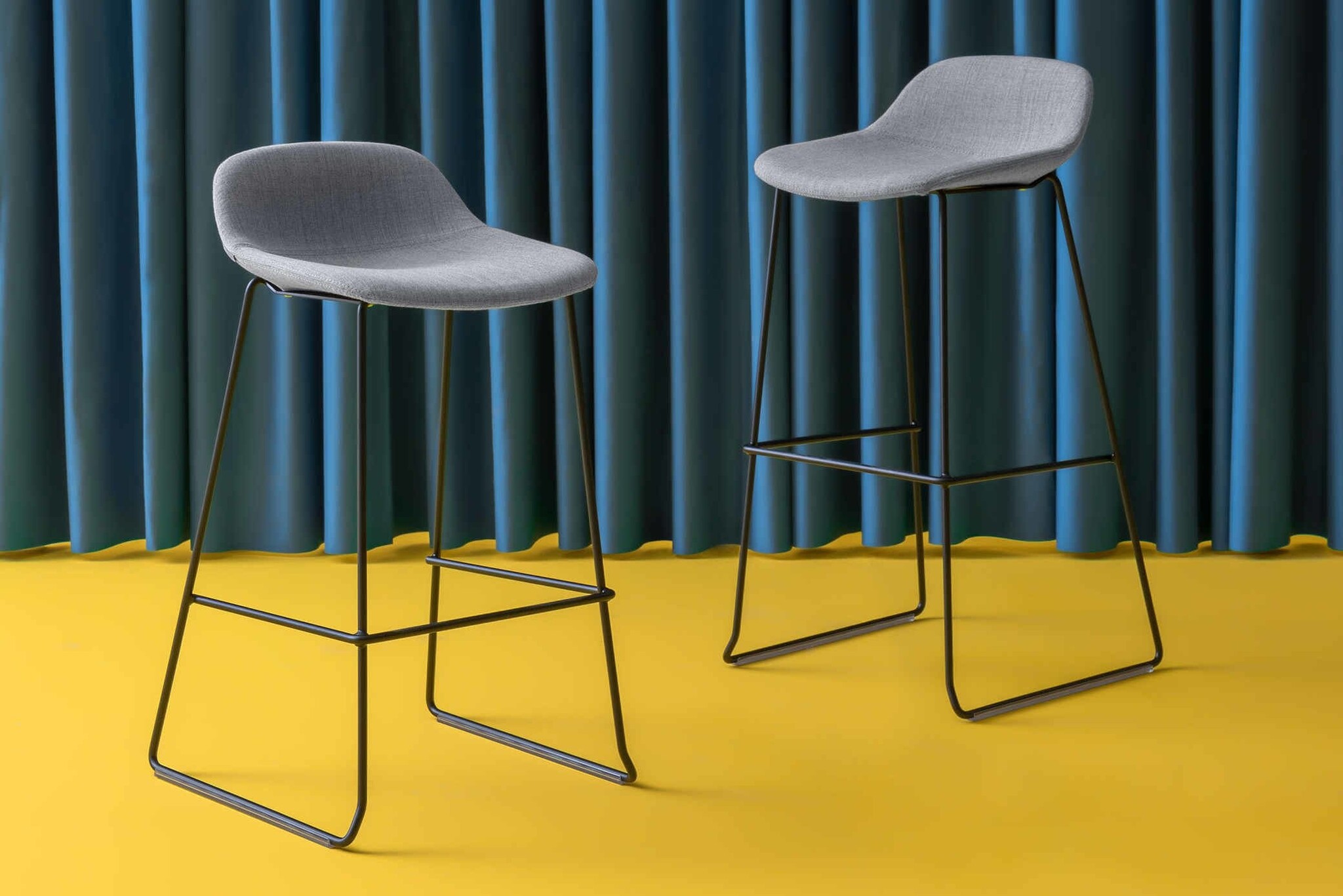 De Pola familie is uitgebreid met barkrukken die nu ook met een eiken frame beschikbaar zijn. Naast de kleuren wit, grijs, antraciet en zwart zijn ook de kleuren licht blauw, olijf groen en oranje leverbaar.
