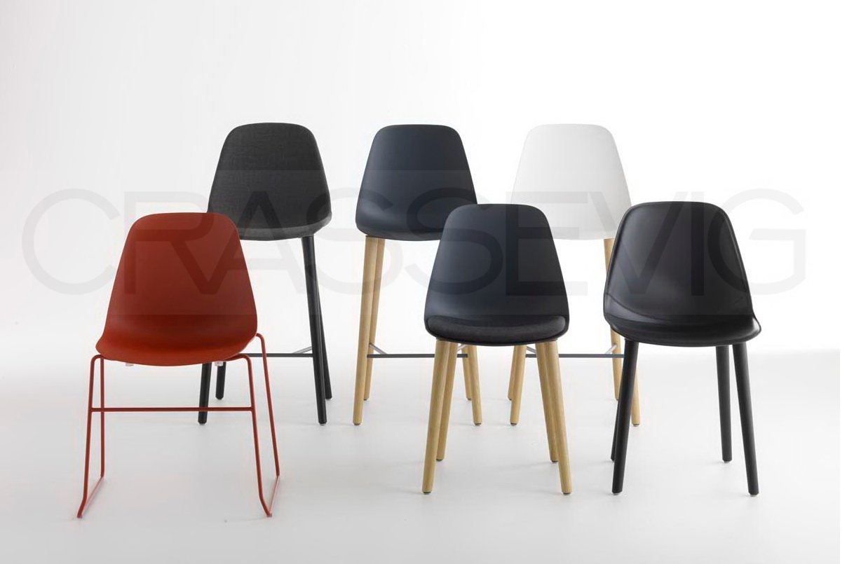 Pola en Pola Light is beschikbaarals eenen barkruk, met verschillende onderstellen. Nieuwe onderstellen en nieuwe kleuren voor de Crassevig Pola