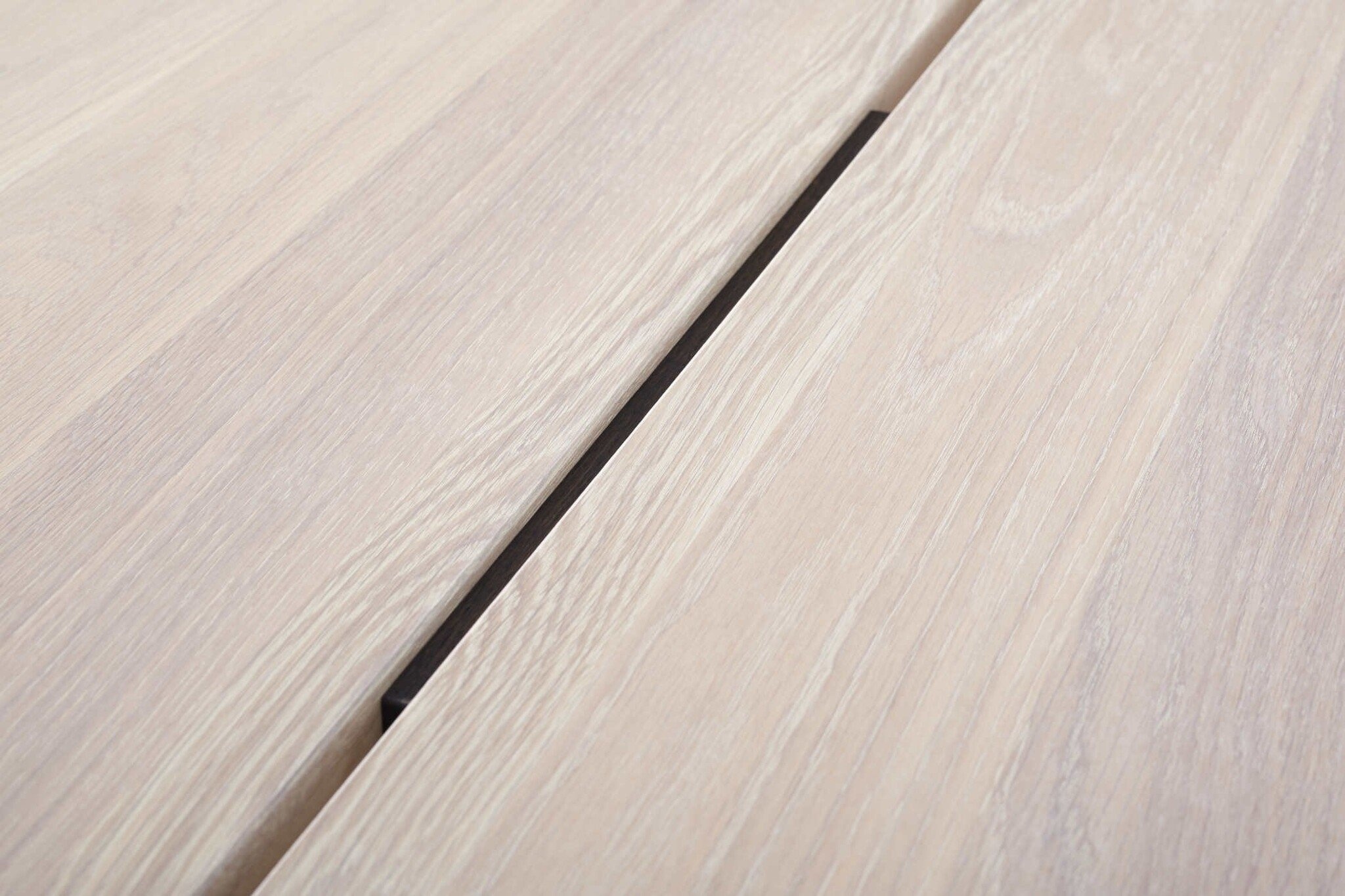 Het tafelblad is in eiken.