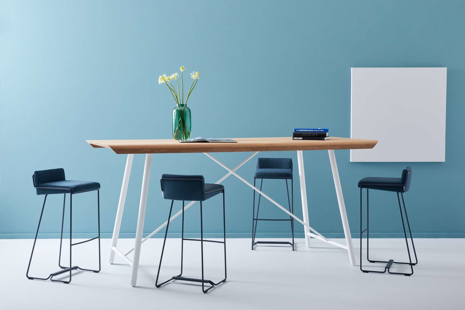 Creafort Avola kruk is een hoog model kruk en is uitermate geschikt voor aan een hoge tafel. Dat kan zijn aan een statafel in een ivergaderruimte op kantoor maar ook aan een hoge lunchtafel in een bedrijfsrestaurant of als barkruk of barstoel in een lunchruimte op kantoor. De moderne vormgeving is slank en elegant. Leverbaar in twee modellen, met of zonder lage rugleuning. Creafort Avola kruk de maten