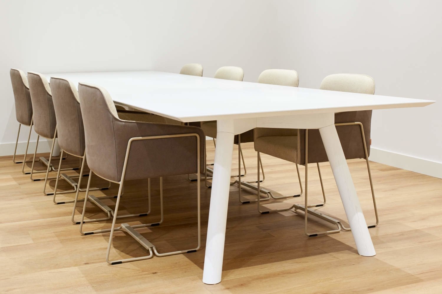 Standaard voorzien van harde glijders (voor tapijt), zachte glijders van vilt optioneel (voor harde vloeren).