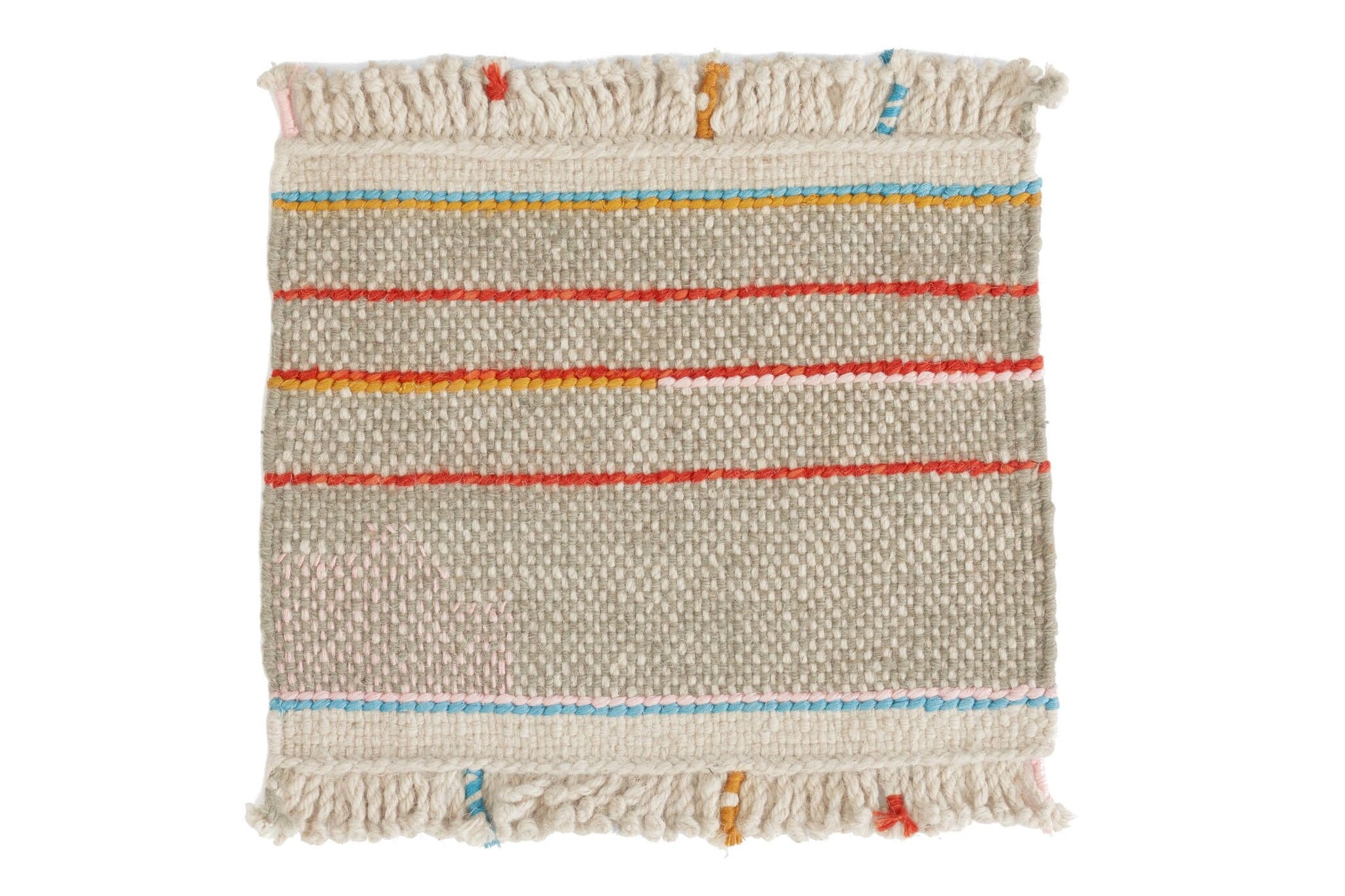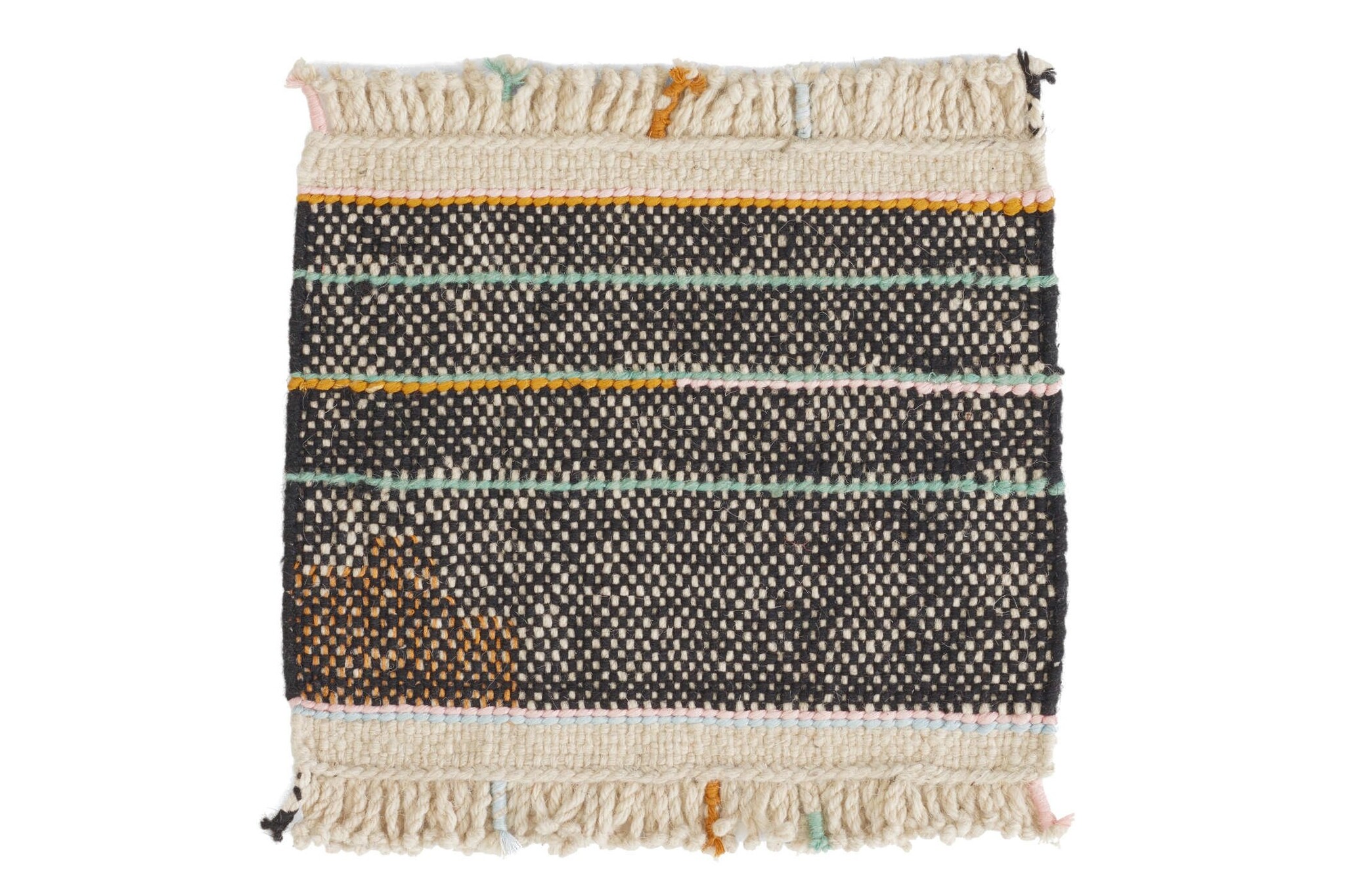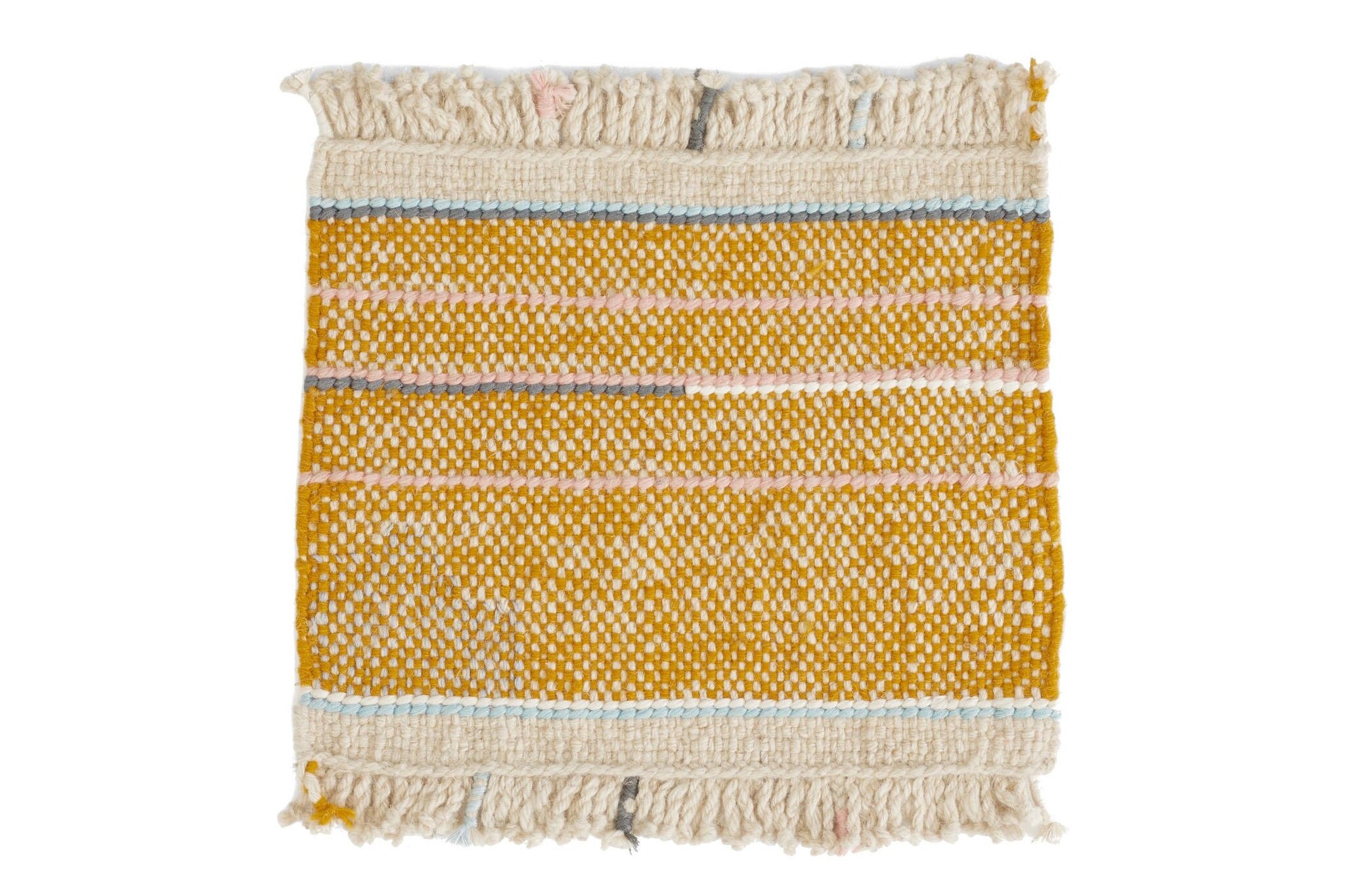 Productiemethode: handgeweven. Onregelmatigheden kunnen optreden als gevolg van het met de hand geweven proces.