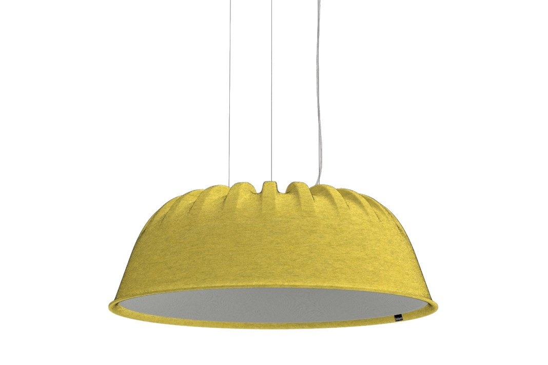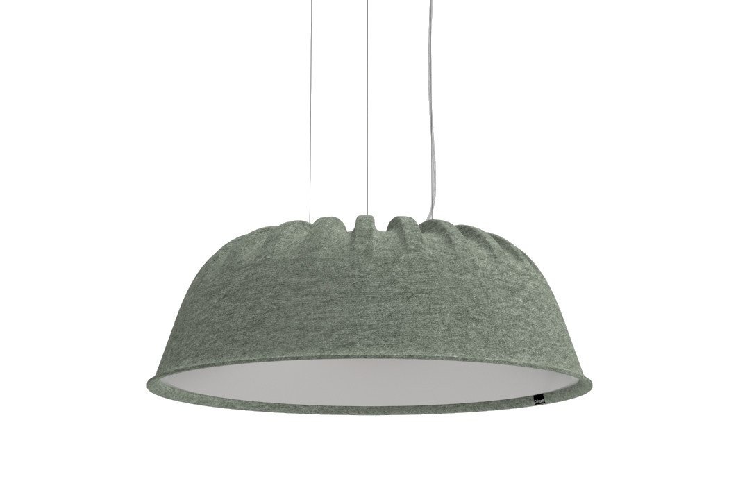 De Vorm Fost is een grote akoestische lamp gemaakt van duurzaam PET-velt. Dit materiaal is afkomstig van gerecyclede PET-flessen en is leverbaar in 11 kleuren. De De Vorm Fost lamp zorgt ervoor dat geluid wordt opgevangen en zo creëert u rust in een ruimte. 2 oplossingen in 1 Met deze akoestische lamp heeft u verlichting en een akoestische oplossing in 1 product. De grote lamp heeft een doorsnede van maar liefst 75 cm. Door deze grootte van de De Vorm Fost hanglamp is deze mooi te plaatsen in vergaderruimtes of in de horeca boven een tafel. Gesprekken worden gedempt en zeker in een (bedrijfs)restaurant voorkomt dat geluidsoverlast. Om warmer licht te creëren in de horeca is deze lamp ook te dimmen. In een vergaderruimte kan deze juist wel weer op de hoogste stand staan voor goed werklicht.
