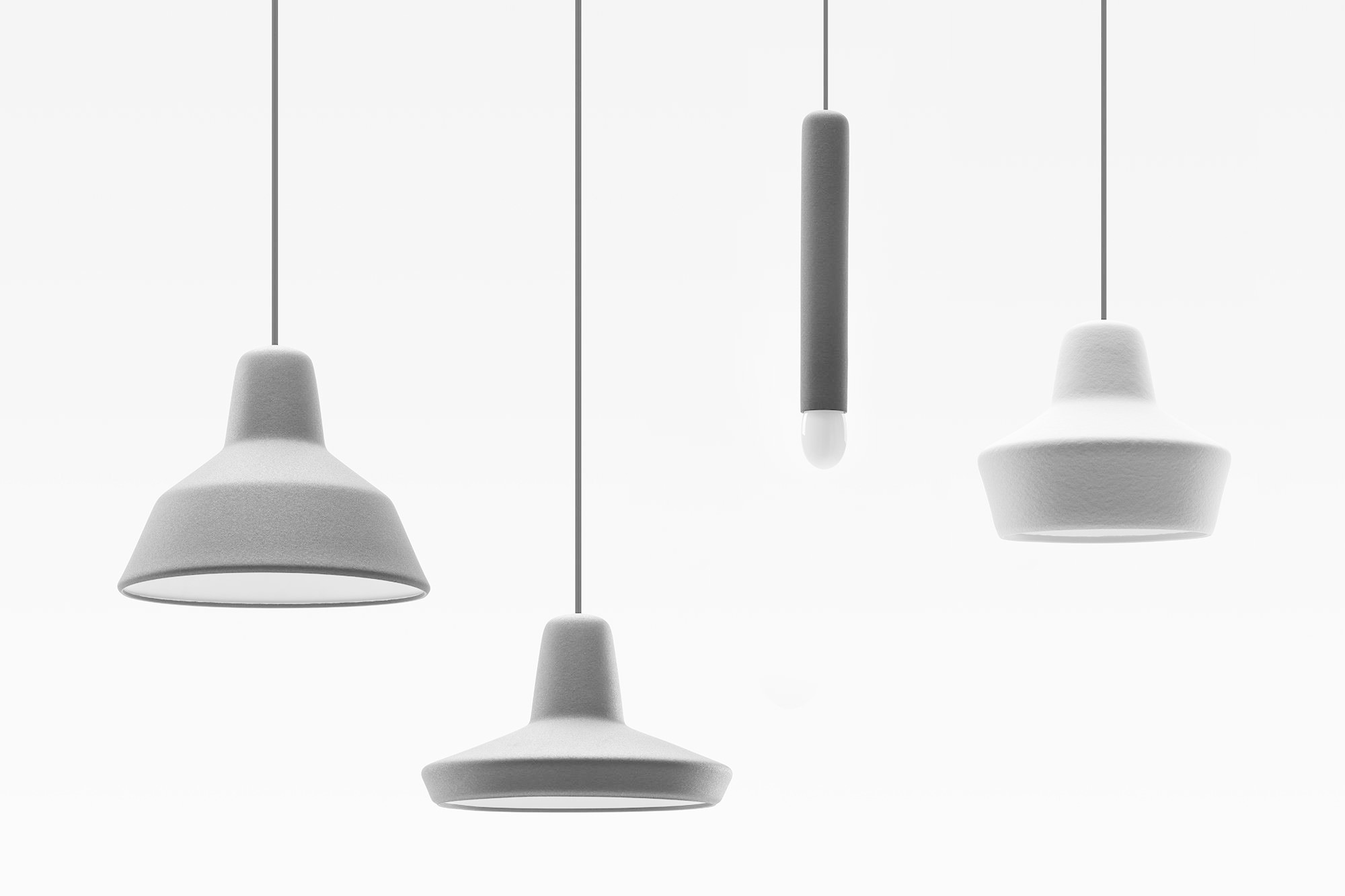 De LW Series bestaat uit vier diverse hanglampen met elk een eigen vorm.