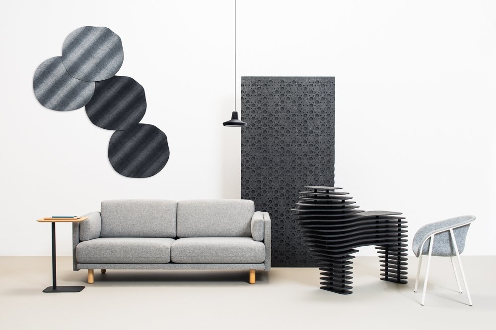 De Onde is gemaakt van geperst PET-vilt, dat is gemaakt van gerecyclede PET-flessen die zijn omgezet in een zacht, maar sterk duurzaam en viltmateriaal