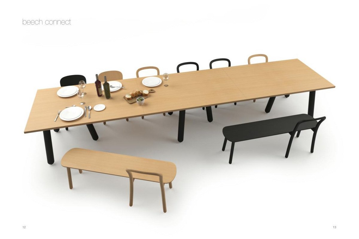 De Beech familie van Dum is uitgebreid met een Beech Bench. Deze heeft dezelfde verfijnde rugleuning als de Beech stoelen.De Beech Bench banken passen ideaal in de bedrijfskantine, restaurant of andere horecagelegenheden en wordt geleverd met of zonder rugleuning. Dum Beech collectie