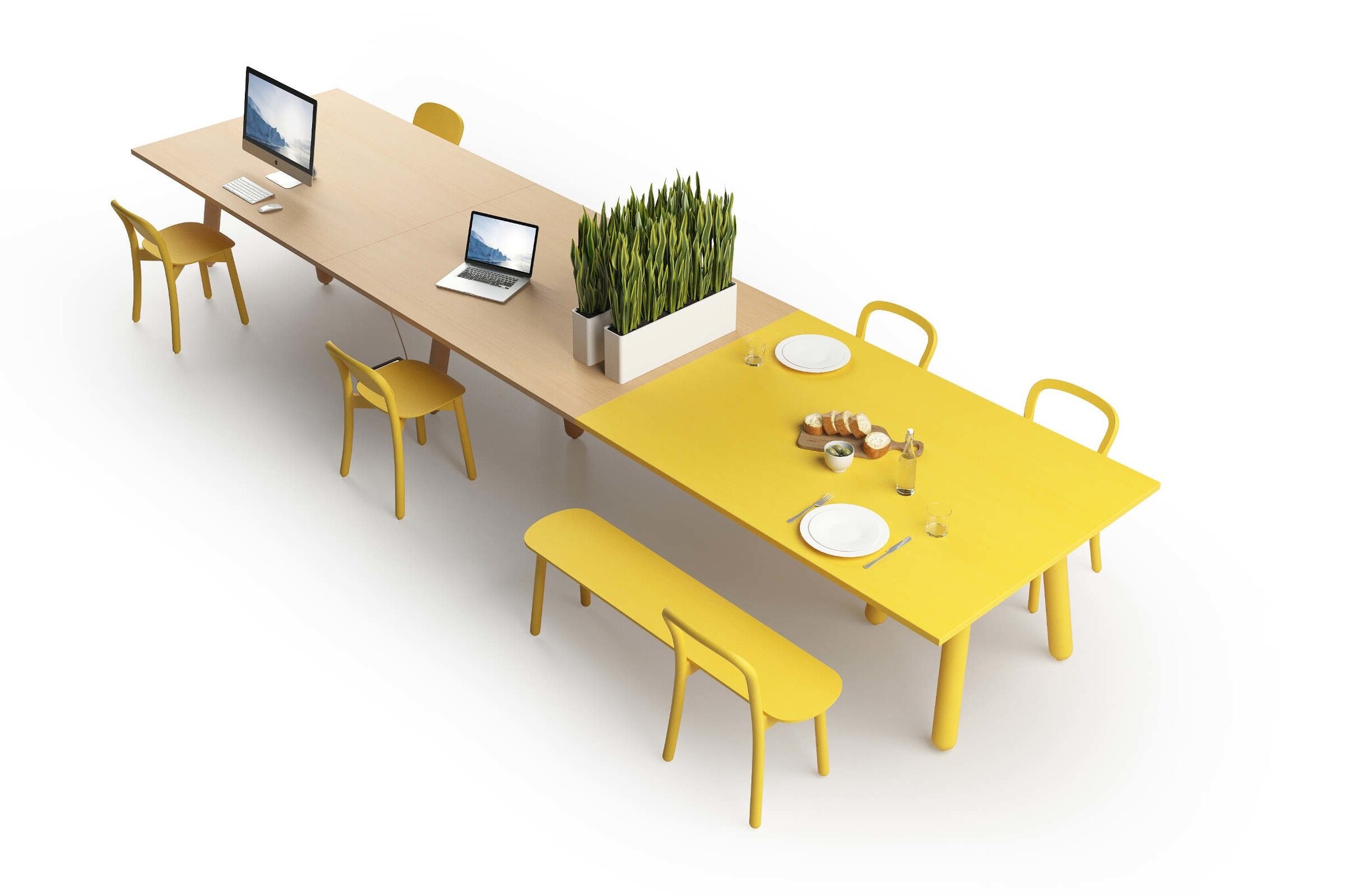Inmiddels is de Beech collectie van Dum al gegroeid tot een volwaardig kantine | horecaprogramma met stoelen, hoge tafels, ronde tafels, bijzettafels, banken en barkrukken. Ze zijn gemaakt van hout en leverbaar in frisse en vrolijke kleuren.