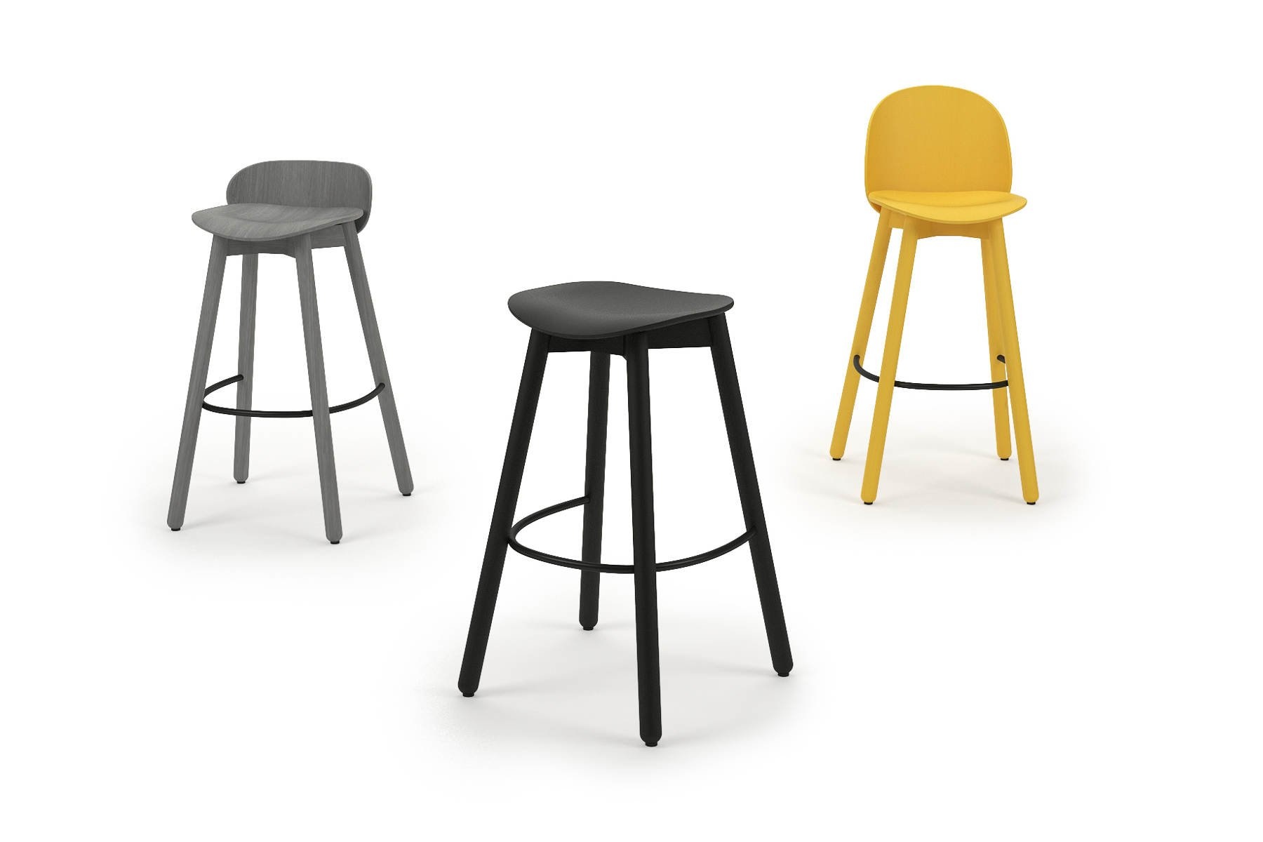 De DUM Beech Boy is een robuuste, stabiele vierpotige barkruk met een ergonomische zitting en een elegante stalen voetsteun die niet misstaat in het bedrijfsrestaurant of lounge met hoge sta-tafel.