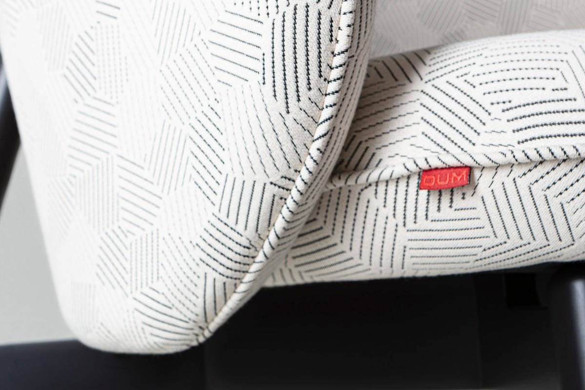 De zitting van de stoel is te bekleden in de stoffen uit de veelzijdige stoffencollectie van Febrik Shade of Febrik Gentle.