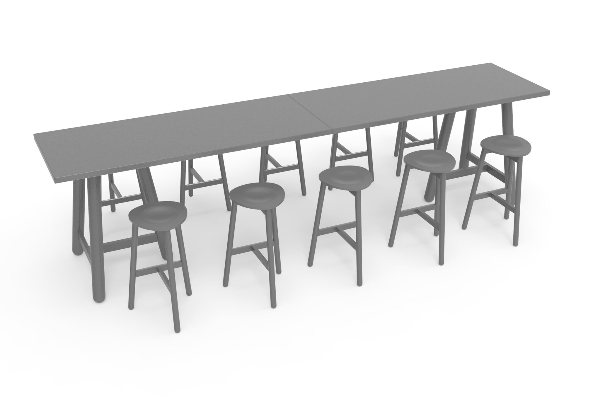 Inmiddels is de Beech collectie van Dum al gegroeid tot een volwaardig kantine | horecaprogramma met stoelen, hoge tafels, ronde tafels, bijzettafels, banken en barkrukken. Ze zijn gemaakt van hout en leverbaar in frisse en vrolijke kleuren.