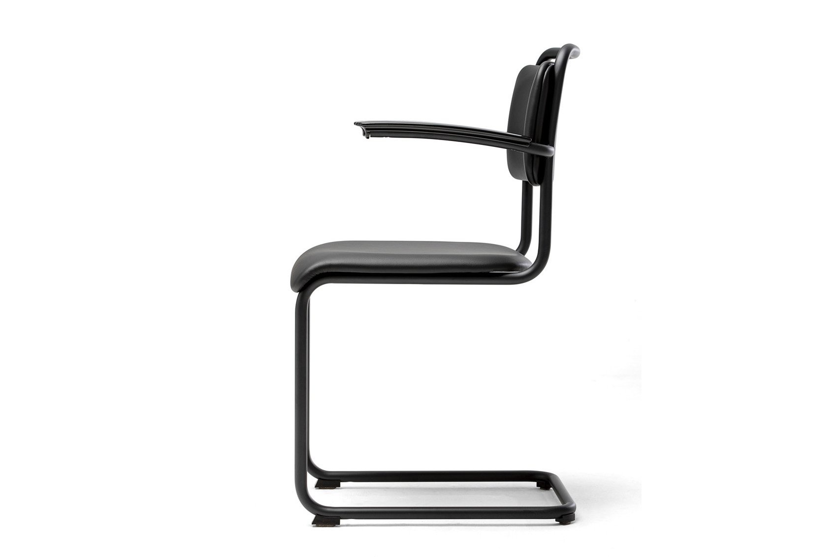 Standaard armleggers van zwart bakeliet voor extra comfort.