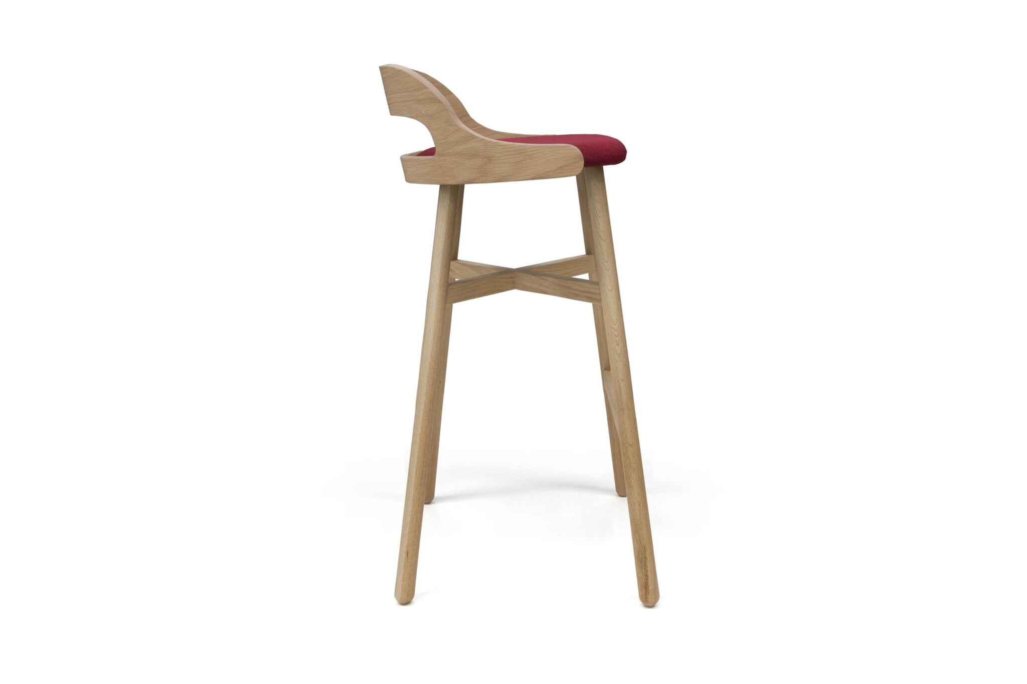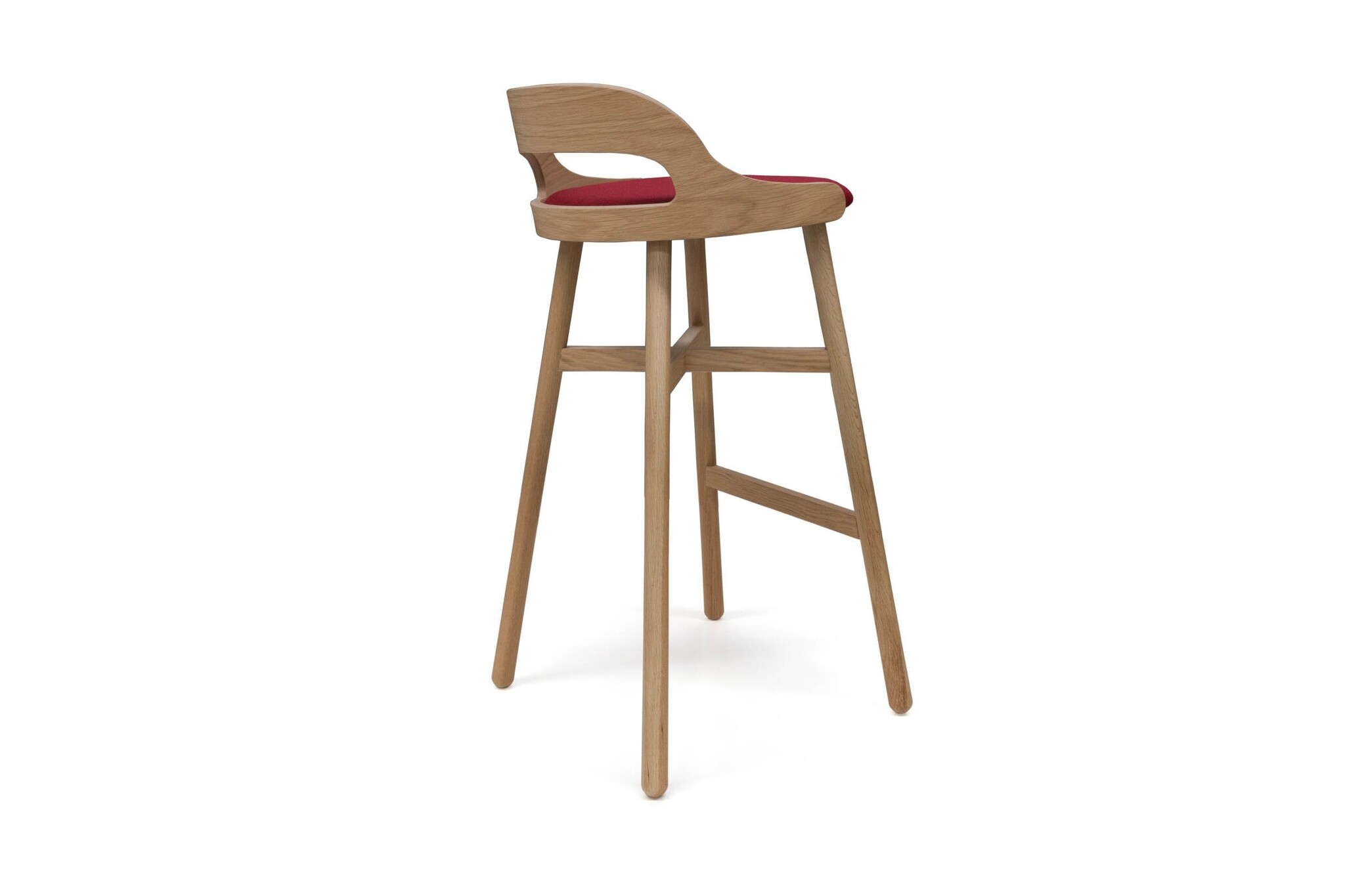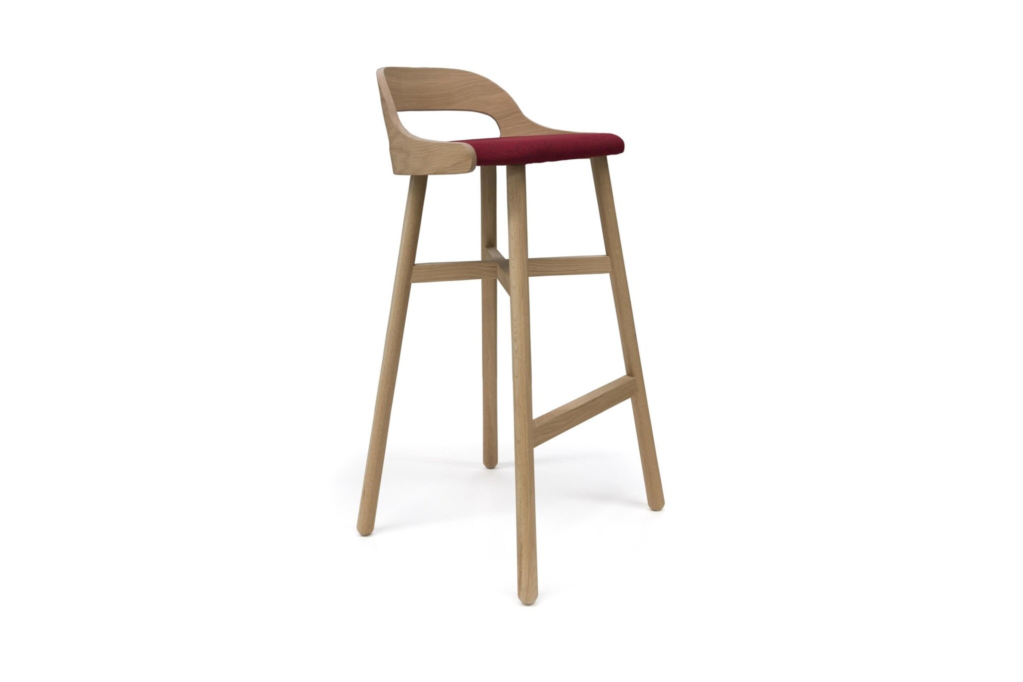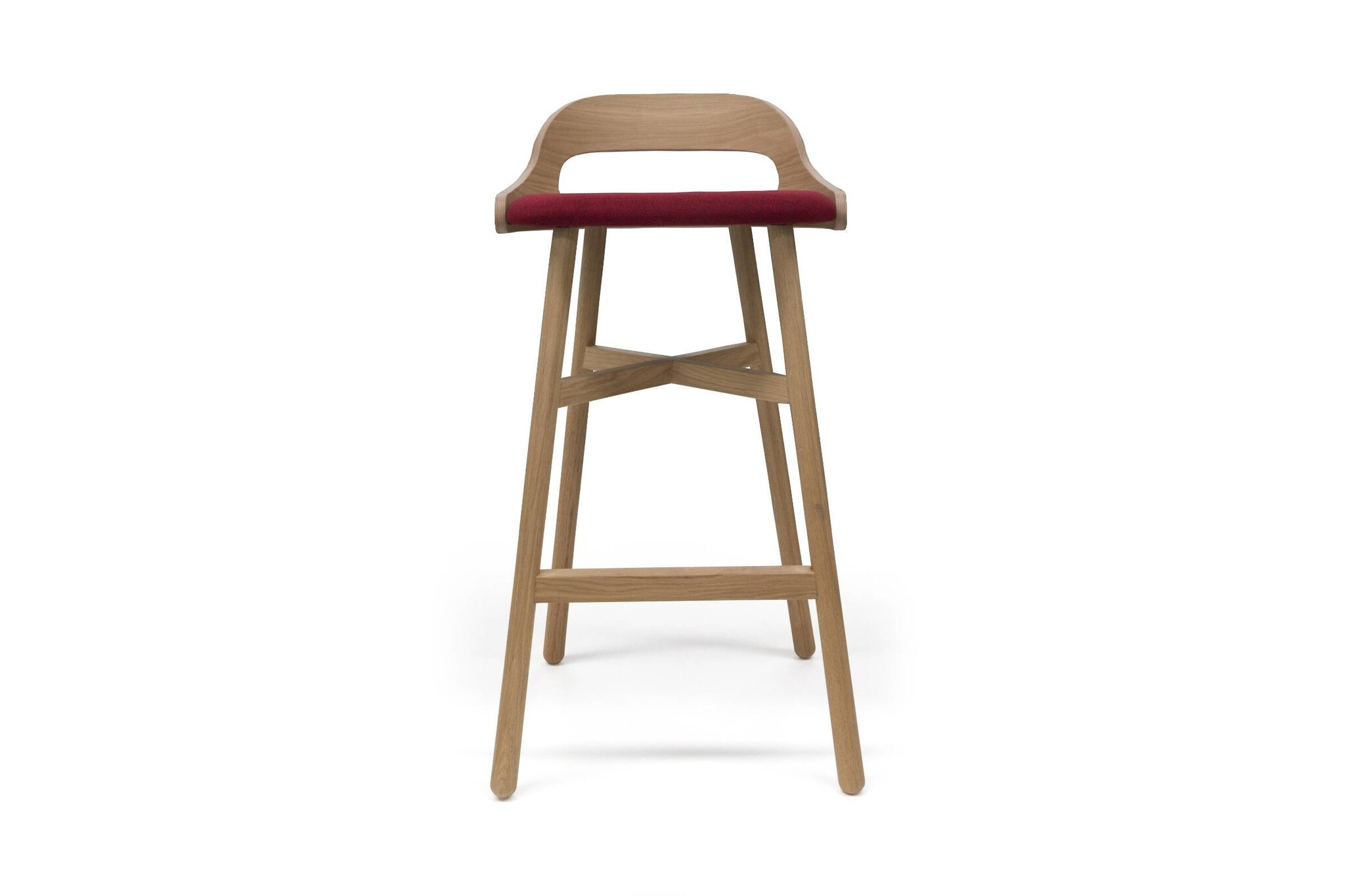De Be Wood kruk kan worden bekleed met stoffen in diverse kleuren.