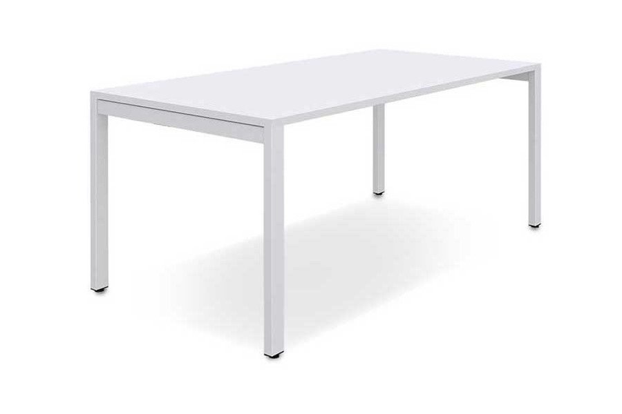 Het tafelblad is gemaakt van laminaat en kan daarom in diverse kleuren worden besteld, waaronder wit- en grijstinten of donkerdere tinten zoals Roble of Ulgu.
