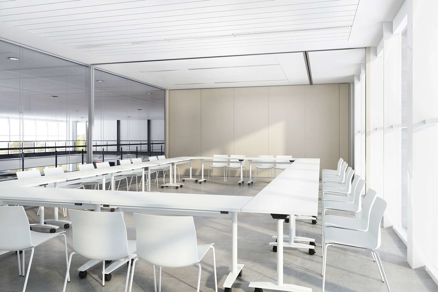 De tafel kan worden gebruikt als vergadertafel, maar ook bijvoorbeeld als werkplek.
