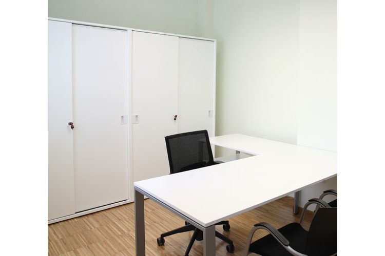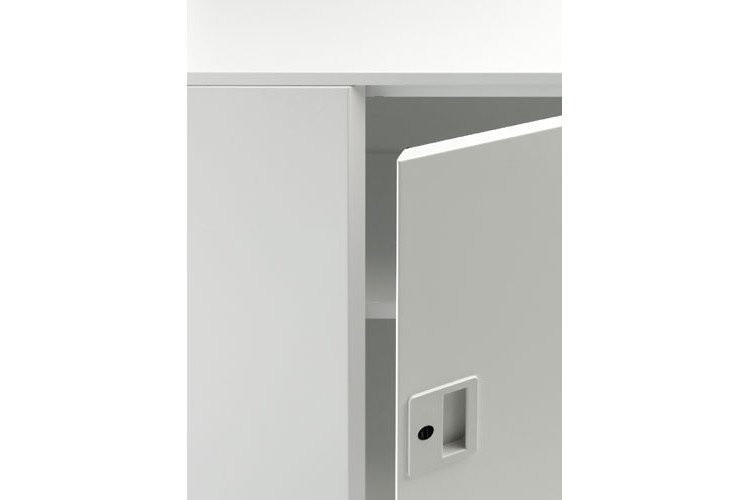 Dynamobel Quo is een strakke kantoormeubelen serie die bestaat uit een ladeblok, schuifdeurkast en een draaideurkast. Quo ladeblok