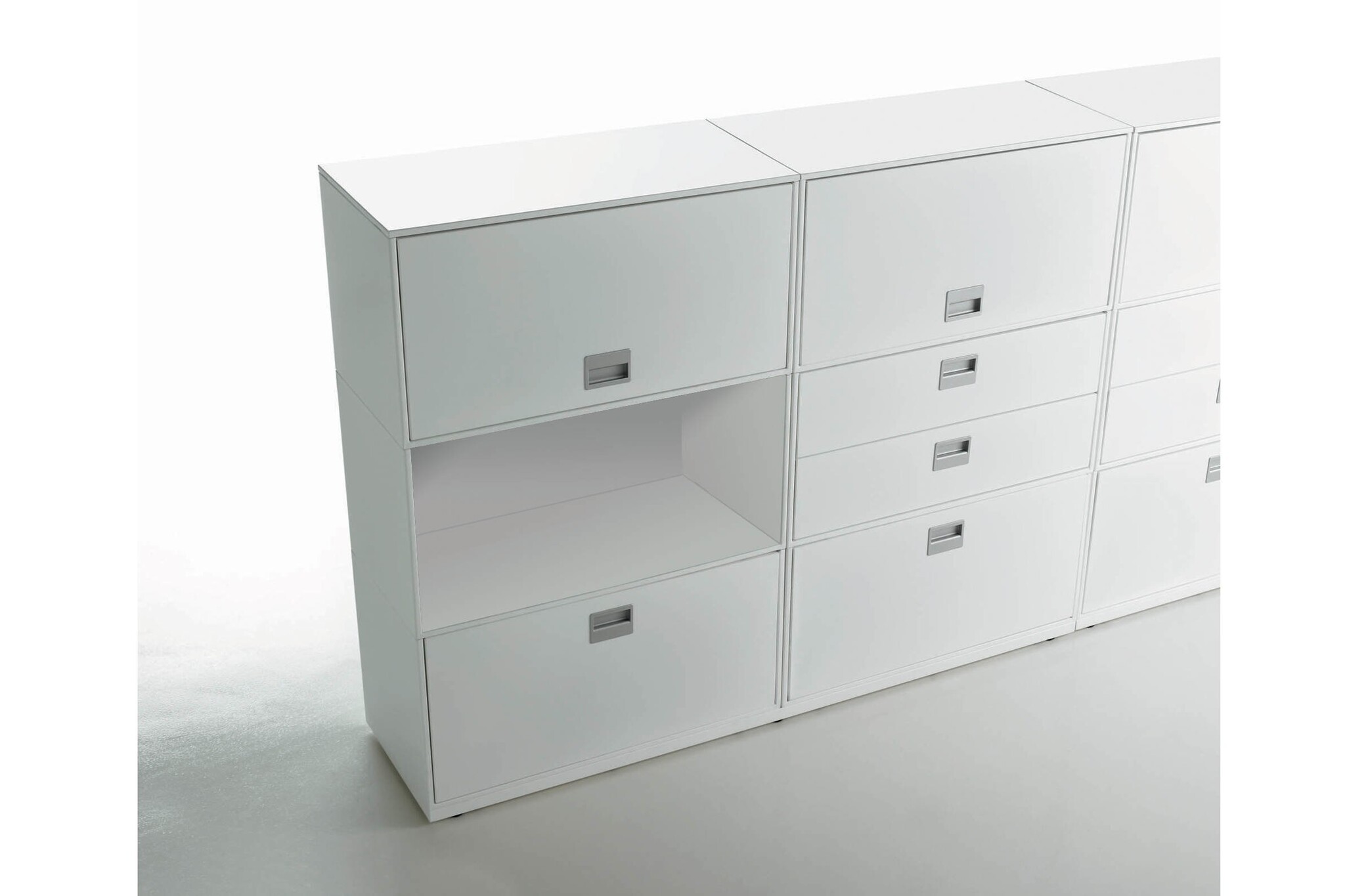 Deze kasten zijn leverbaar in vier versies: open of intrekbare deur, dossier of combi lade.