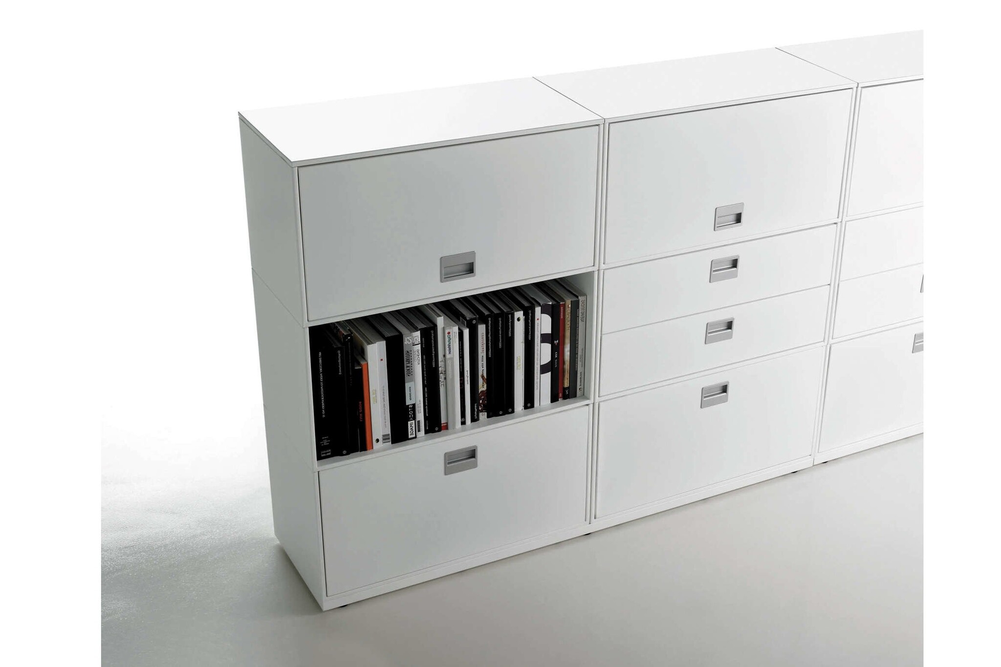 Er zijn vele opties mogelijk om deze archiefkast aan te passen aan uw smaak en wensen. Een voorbeeld is dat de kasten te leveren zijn in vier versies. U kunt kiezen uit een archiefkast met een open of een intrekbare deur of maak een keuze uit de twee lade opties: dossier of combi lade. Deze opties zijn ook te combineren. Hierdoor ontstaat er een flexibele kast met diverse ruimtes om uw spullen in op te bergen.