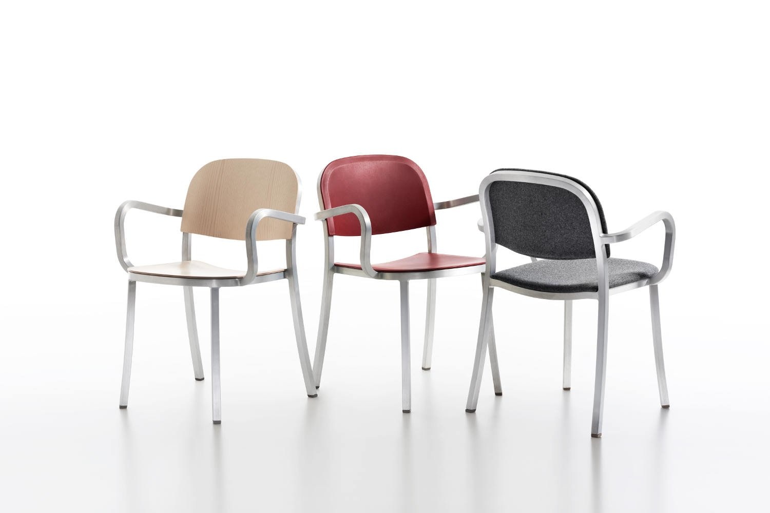 Met de 1 inch stoel van Emeco maakt Jasper Morrison een begin in de collectie met handgemaakte gerecyclede aluminium producten. Het is een lichtgewicht stoel welke door middel van 77 stappen in het productieproces in 1944 voor het eerst is gemaakt. Voor het maken van deze stoel werd er gekozen voor een buis van 1 inch om het frame van te maken. Dit omdat het zo een sterk frame zou worden, maar het gewicht van de stoel zo laag mogelijk houdt. Er wordt dus met een minimale hoeveelheid materiaal een maximale sterk product gecreëerd. De 1 inch van Jasper Morrison is een perfecte combinatie tussen handwerk, precisie, ontwikkelingen, duurzaamheid, esthetiek, kracht en comfort. In de collectie van de Emeco 1 inch zitten stoelen, stoelen met armleuningen, barstoelen in drie hoogtes en bartafels. Het gebruikte hout is 100% gerecycled hout en kan geverfd worden in zeven kleuren: blauw, bordeaux, bruin, donker grijd, groen, lichtgroen en oker. Ook geschikt voor buitengebruik.