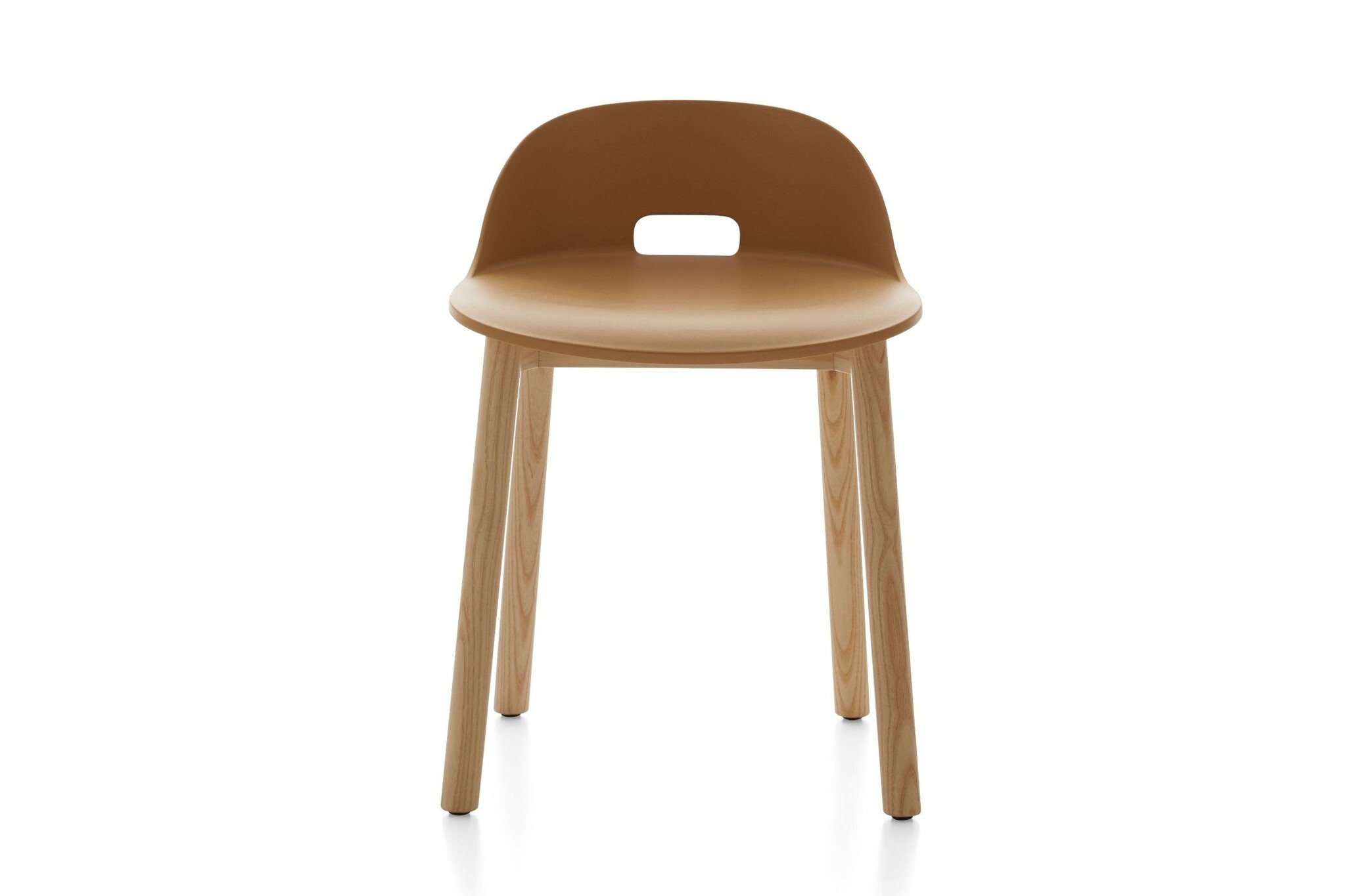 Voor de kleuren van de stoelen koos ontwerper Jasper Morrison een subtiel palet van aardetinten, zoals bruin, groen, zand, rood en donkergrijs. Gecombineerd met de basis in essenhout, biedt de Emeco Alfi een breed visueel scala aan keuzes.