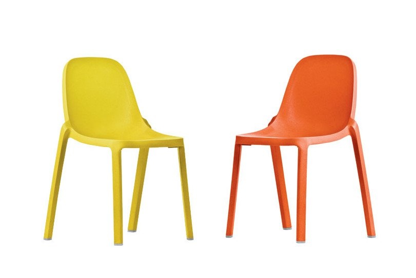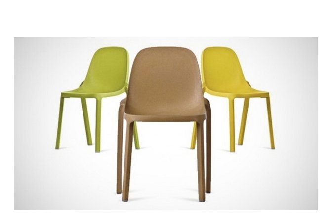Emeco Broom, ontworpen door Philippe Starck, bestaat voor 75% uit polypropyleen afval en 15% uit houtafval, met een toevoeging van 10% glasvezel. Over Emeco Emeco kantoormeubilair stoelen zijn gemaakt uit materialen als aluminium dat voor 80% gerecycleerd is. De designstoelen van Emeco combineren een elegant design met uitzonderlijke duurzaamheid. De Emeco Navy Chair uit 1994 is een van de bekendste stoelen.