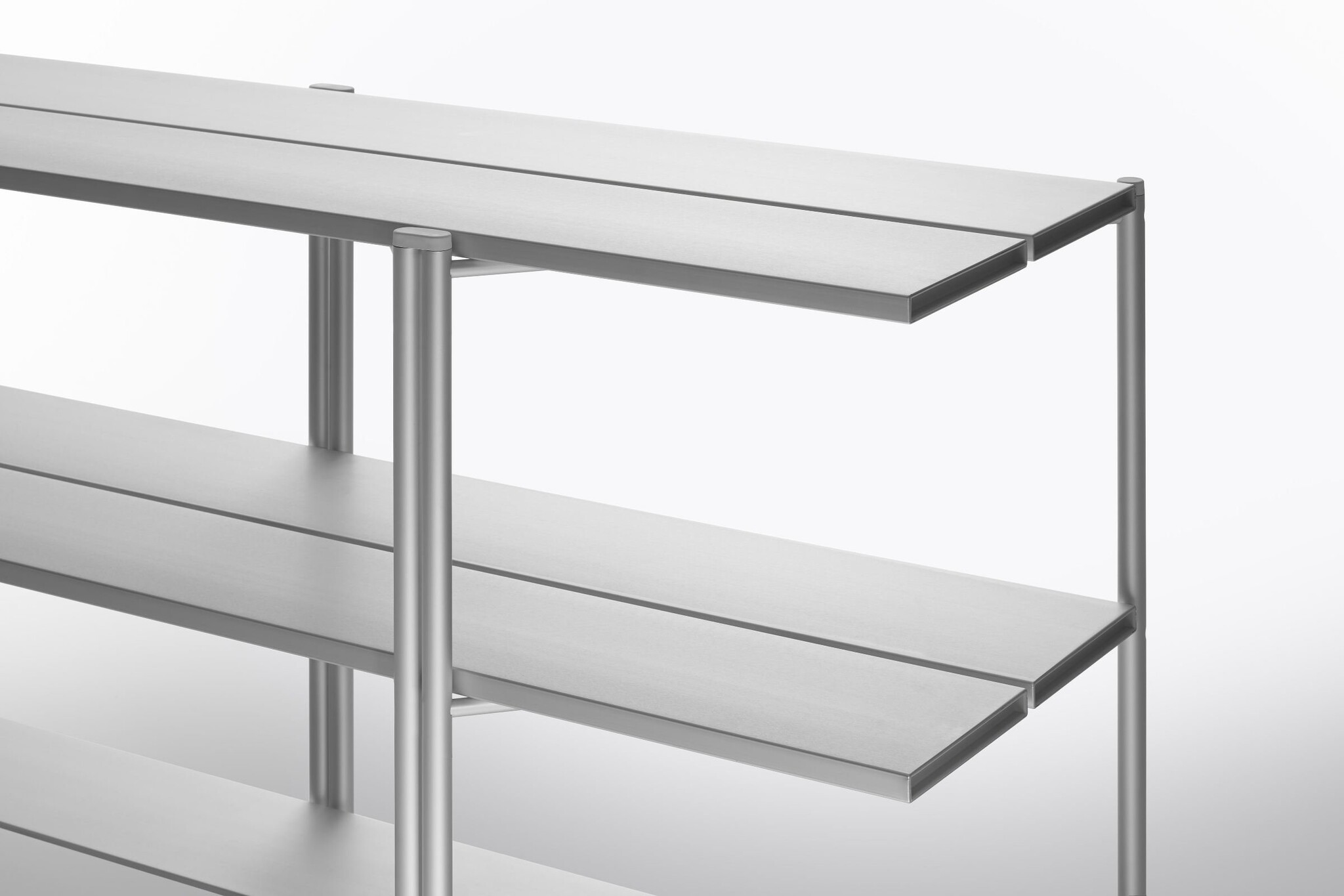 De Run is gemaakt van verantwoorde gekozen en duurzame materialen, geschikt voor gebruik en ontworpen om lang mee te gaan. Sam Hecht en Kim Colin, ontwerpers van de Run hebben hun eerste samenwerking met Emeco succesvol doorstaan.Deze stijlvolle Boekenkast is verkrijgbaar is Essen, Ceder en walnoothout gecombineerd met een aluminium frame. Het frame is ook verkijgbaar in een zwarte uitvoering. afmeting L: 183cm W: 45.5cm H: 101cm