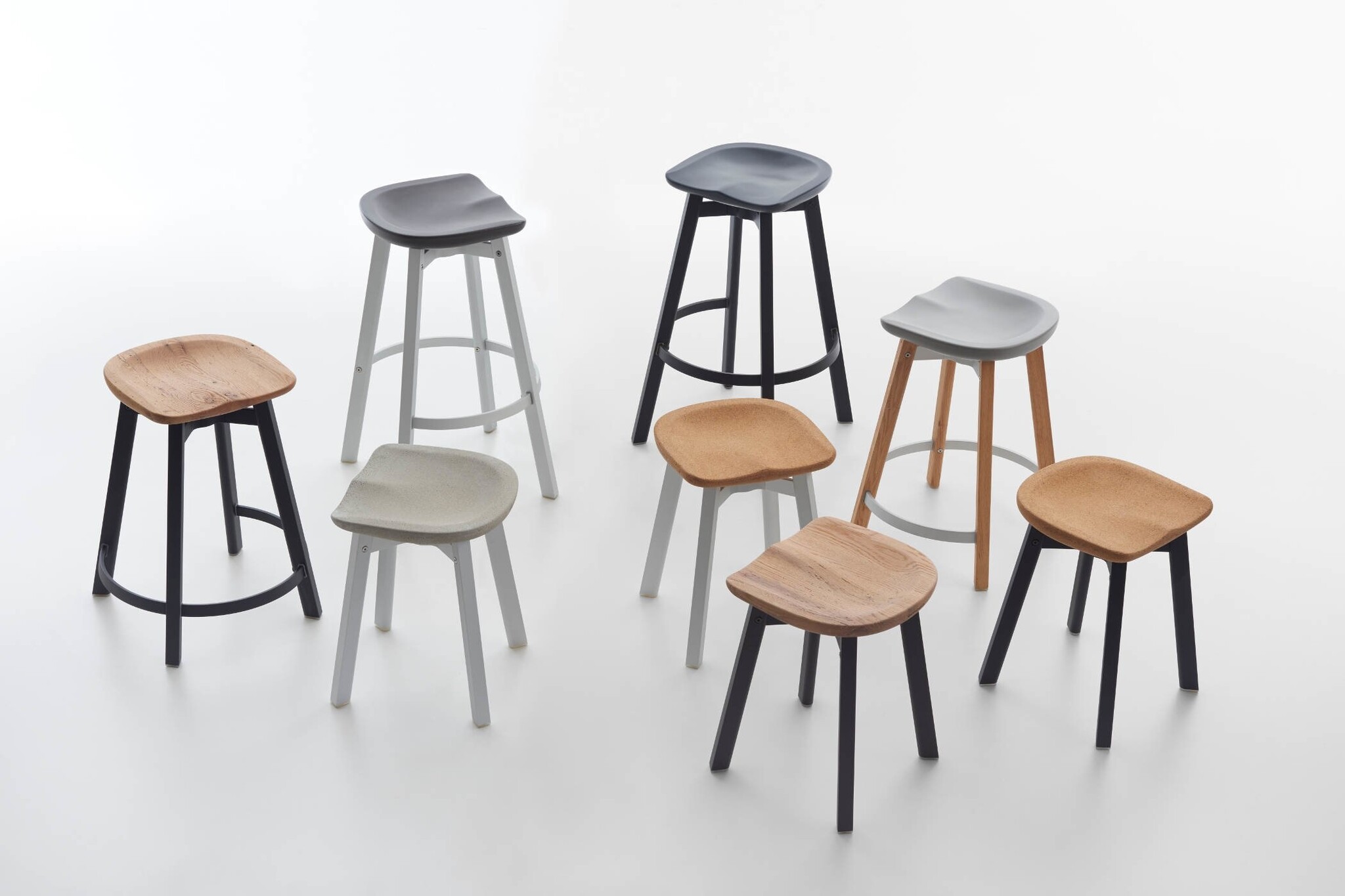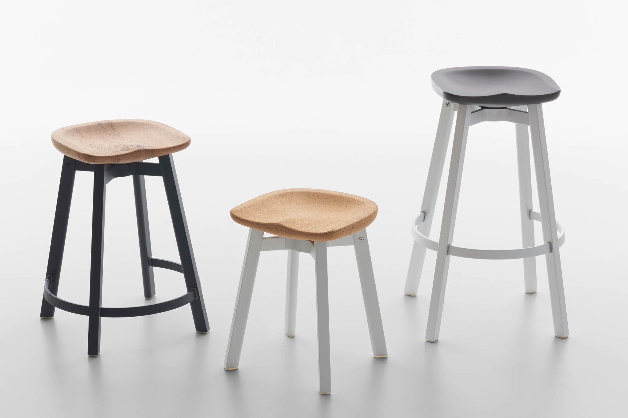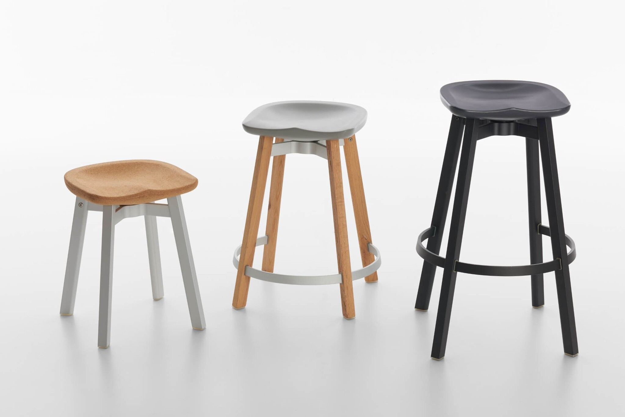 De Su van Emeco is een kruk leverbaar in verschillende hoogtes. De zitting is gemaakt van kurk. Dit geeft een warme uitstraling. De krukken zijn ideaal te gebruiken aan de bar (hogere varianten) of als bijzetkruk om aan te schuiven bij een collega.