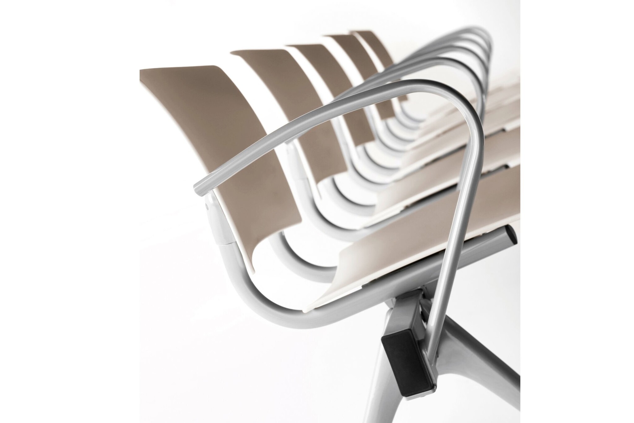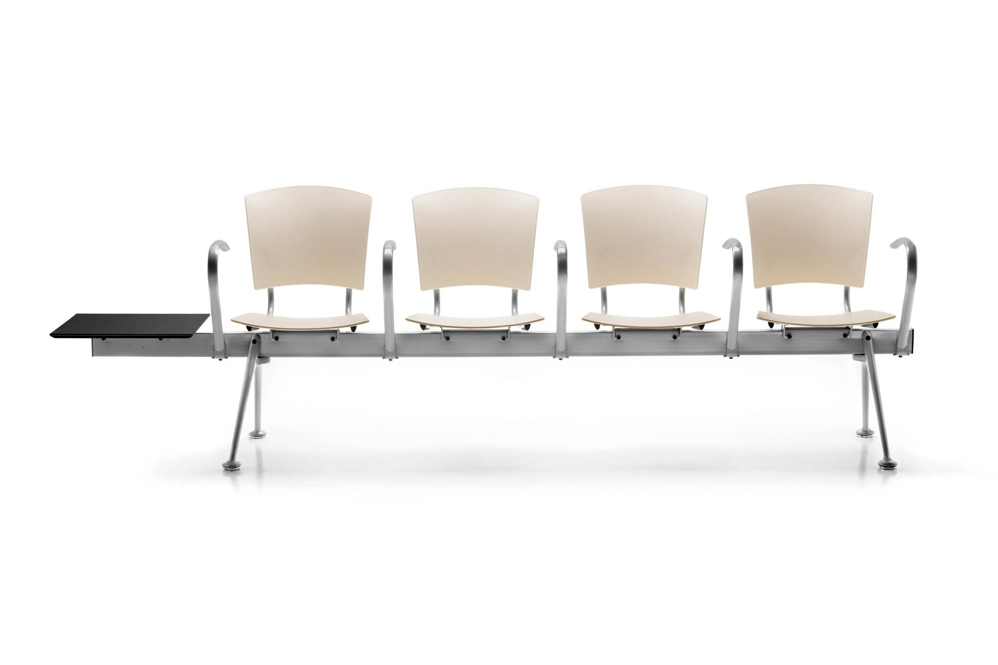 De bank heeft een stalen raamwerk dat rust op twee aluminium bases en kan een totaal van vijf stoelen, met of zonder armen, of een combinatie van stoelen en bijzettafels ondersteunen.
