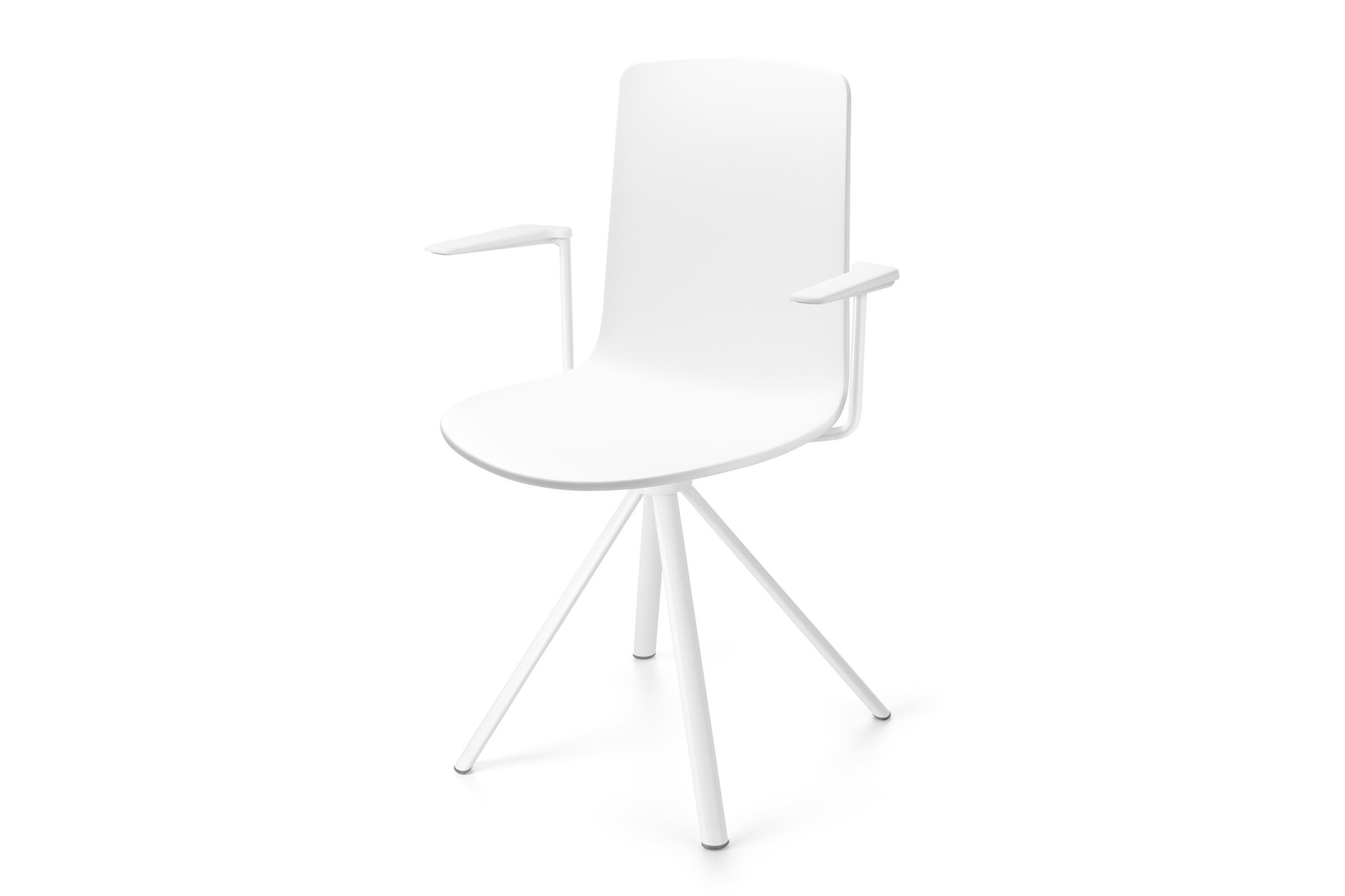 De sterpootstoel met wielen, met of zonder armen, is een ander nieuw programma van de Enea Lottus en is leverbaar als een vaste en draaibare versie.