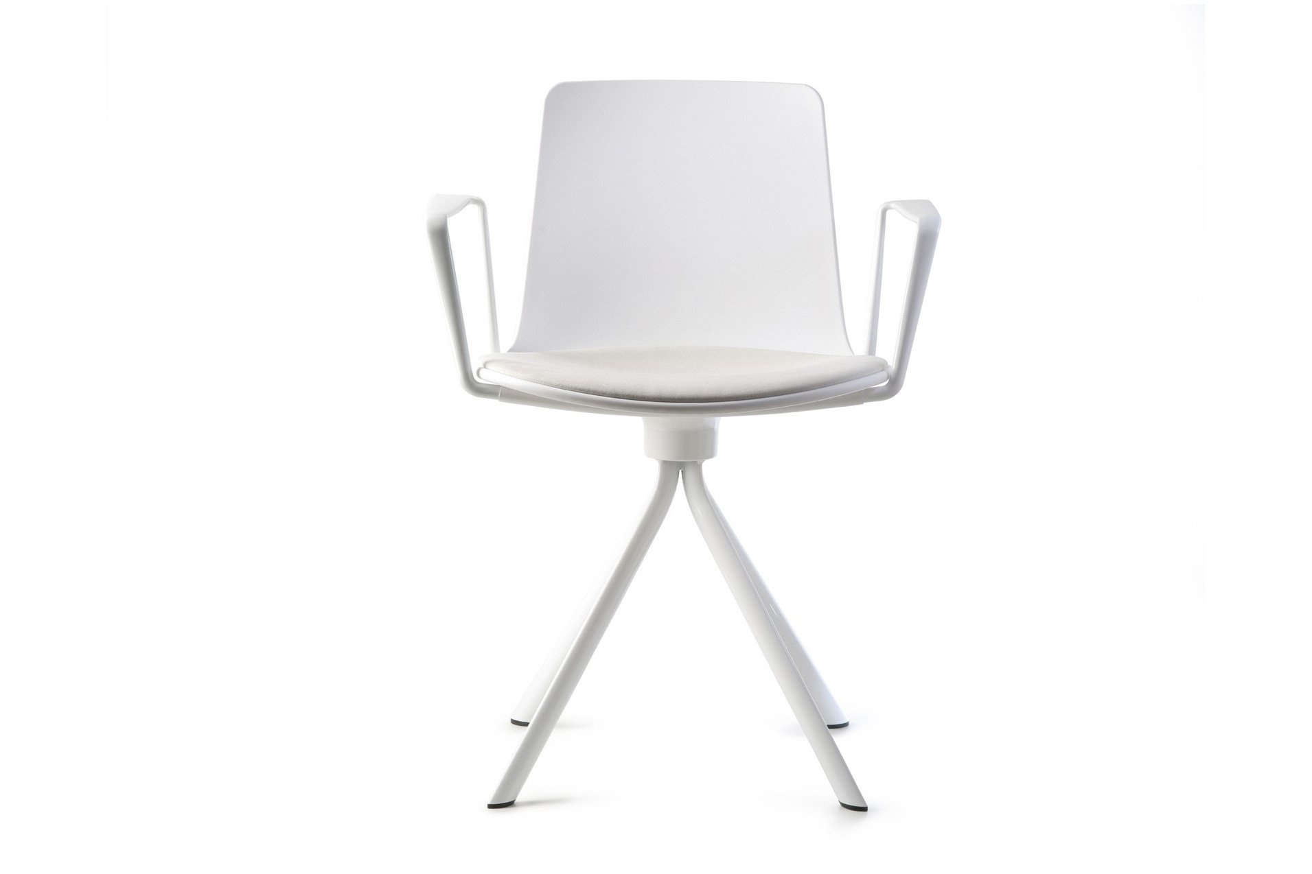 De sterpootstoel met wielen, met of zonder armleggers, is een ander nieuw programma van de Enea Lottus en is leverbaar als een vaste en draaibare versie.