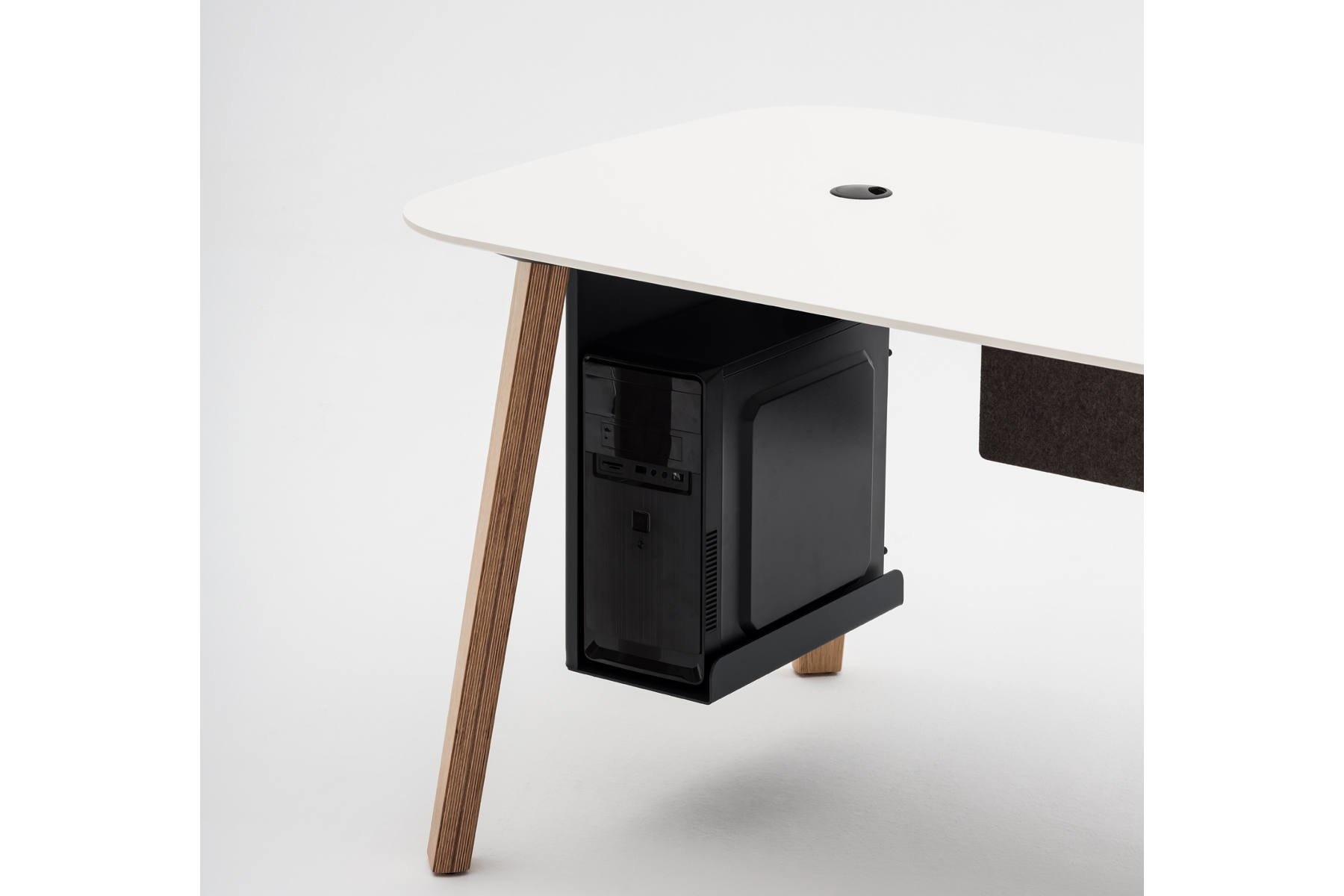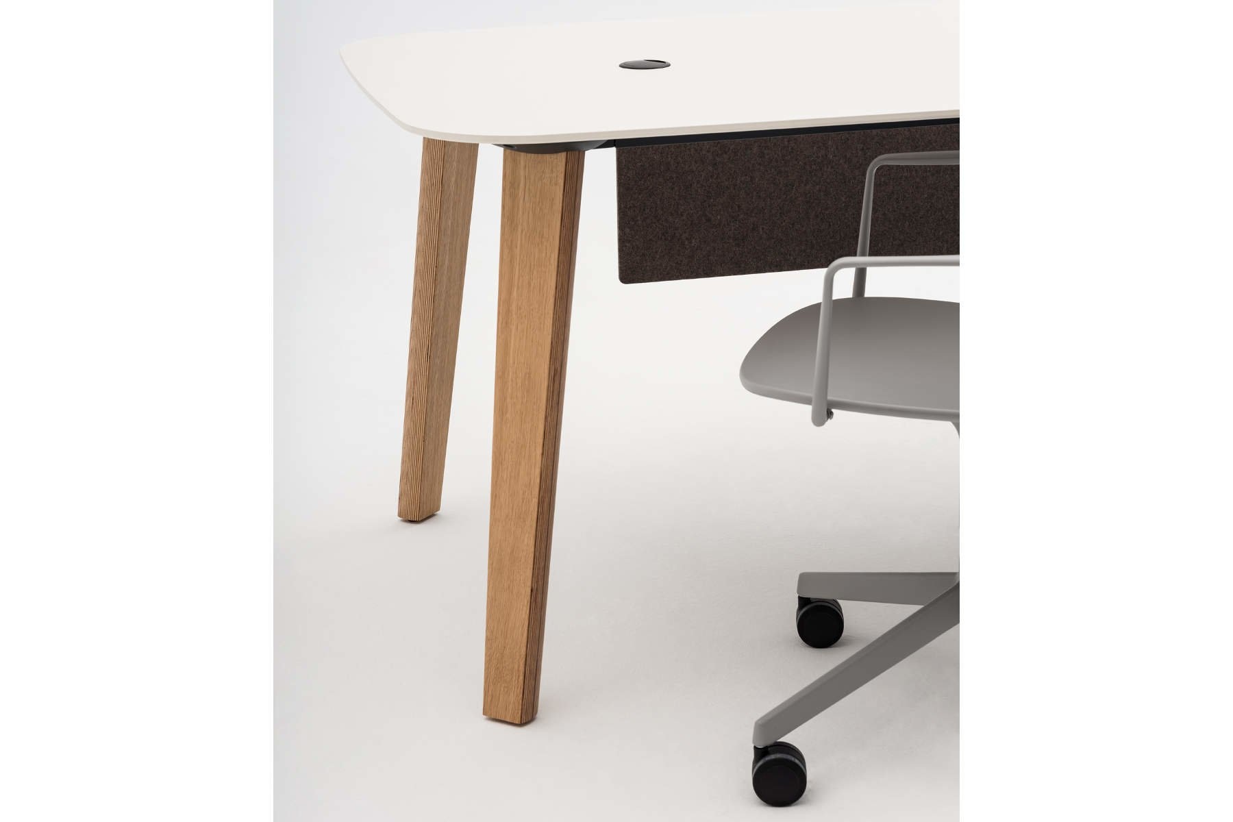 Er kan voor gekozen worden om onder de bureaus een scherm te plaatsen. Dit zorgt er niet alleen voor dat diverse draden op een elegante manier afgeschermd zijn, maar ook voor meer privacy in (grote) ruimtes.