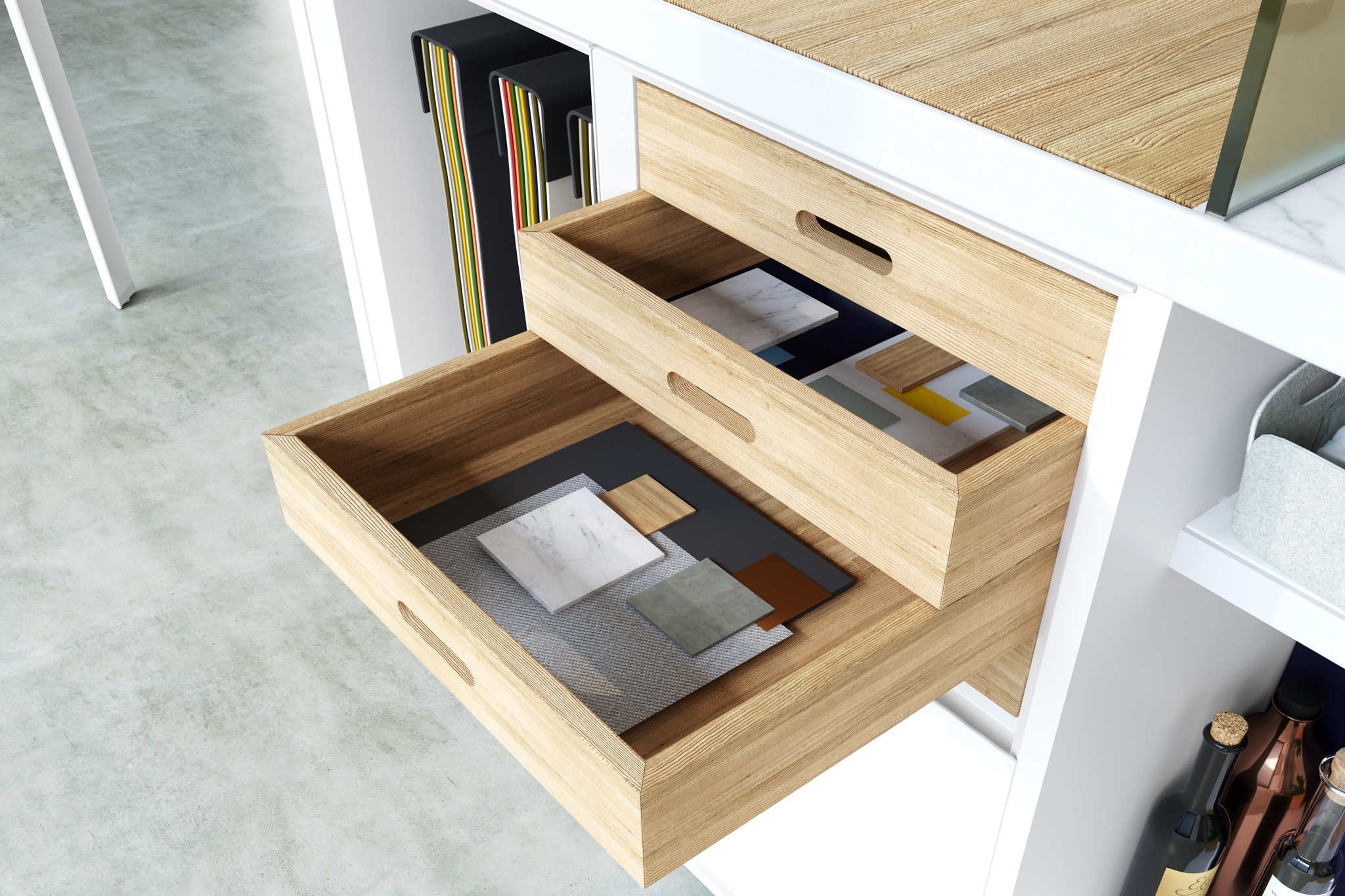 Met de Estel Coffice Isola Shop laat u zien wat u in huis heeft. In de vele laden kunt u uw monsters, kleurenpallets, stoffencollectie en materialen plaatsen. Op de grote tafel kunt u vervolgens alles goed laten zien en dat allemaal onder het genot van een kopje koffie, vandaar de naam Coffice. Kenmerken van de Estel Coffice Isola Shop